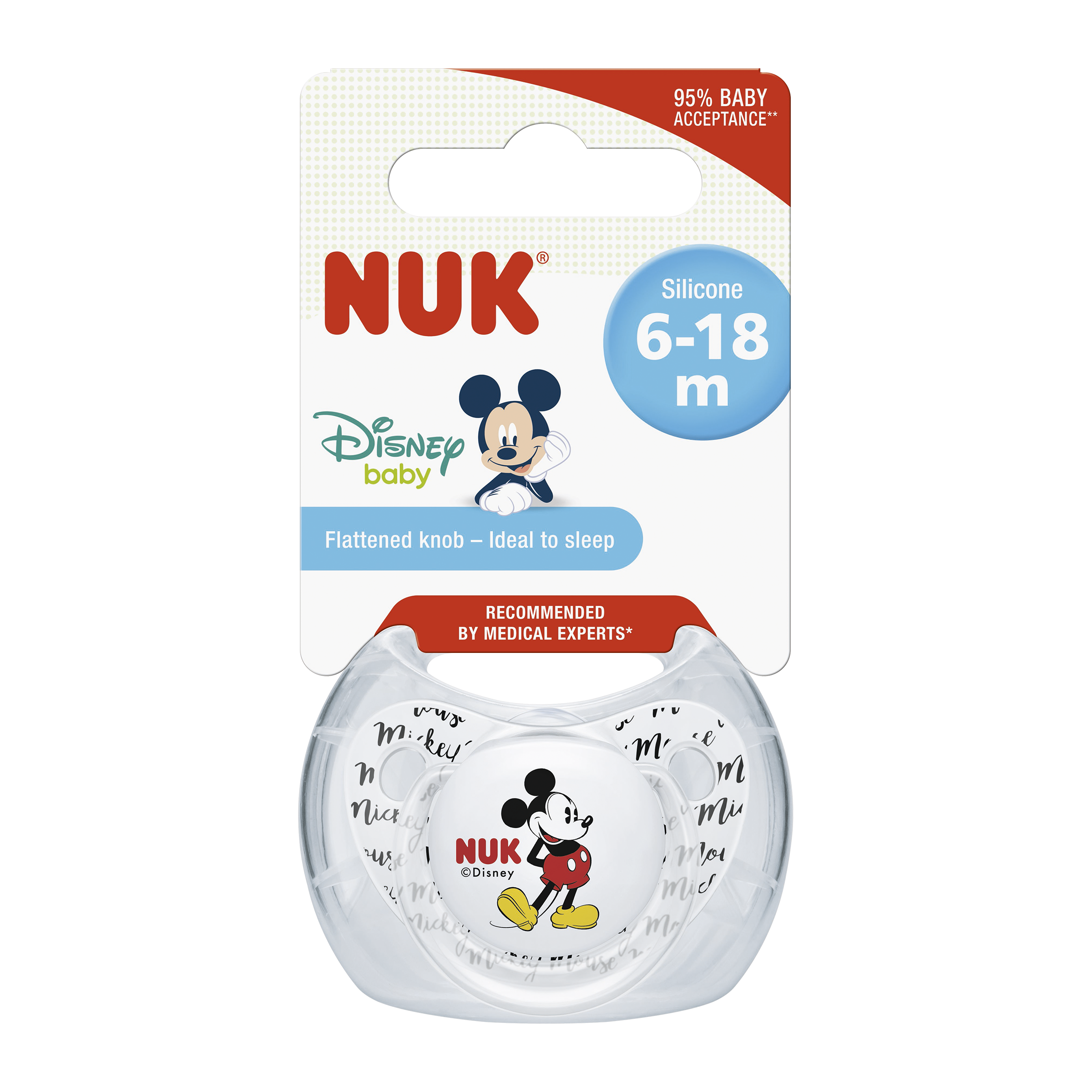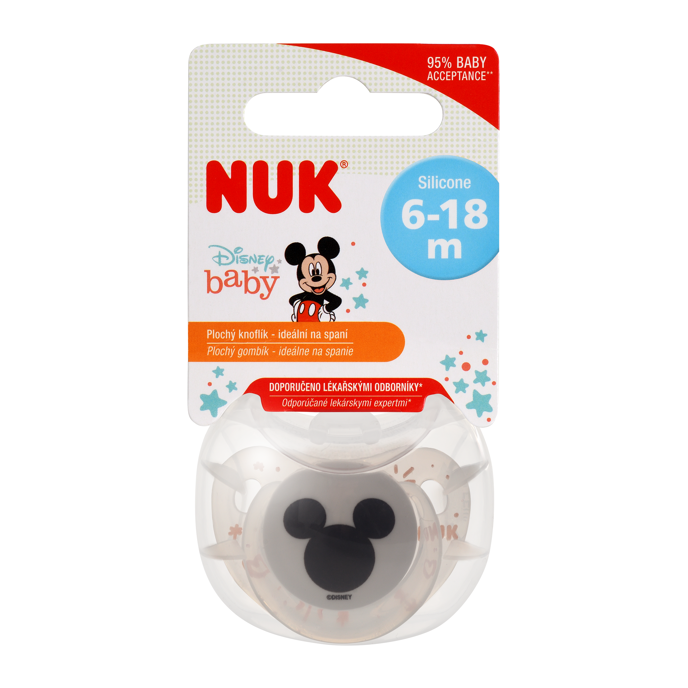 Každý den čeká na vaše děti mnoho vzrušujících dobrodružství, během nichž je dudlík nepostradatelným společníkem, který jim dává pocit jistoty a bezpečí. Ať už vaše dítě rozruší neznámé tváře, nové zvuky či prostředí, známé instinktivní sání dudlíku je opět dokáže rychle uklidnit. Nový silikonový dudlík NUK Disney Mickey s vylepšeným tvarem – dudlík má stejný tvar jako matčina bradavka při kojení, proto dokonale padne do úst dítěte při sání. Díky užšímu a ploššímu tvaru sací části se snižuje tlak na zuby a čelisti, a poskytuje tak jazyku dostatek prostoru pro přirozené sací pohyby. Plochá sací část a hladká spodní strana přinášejí dítěti příjemný pocit a podporují tak přirozené sání.