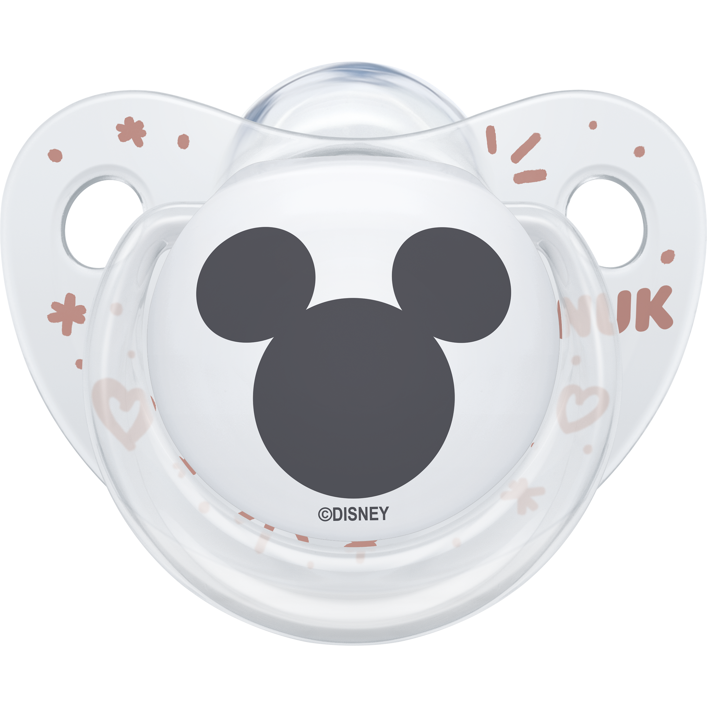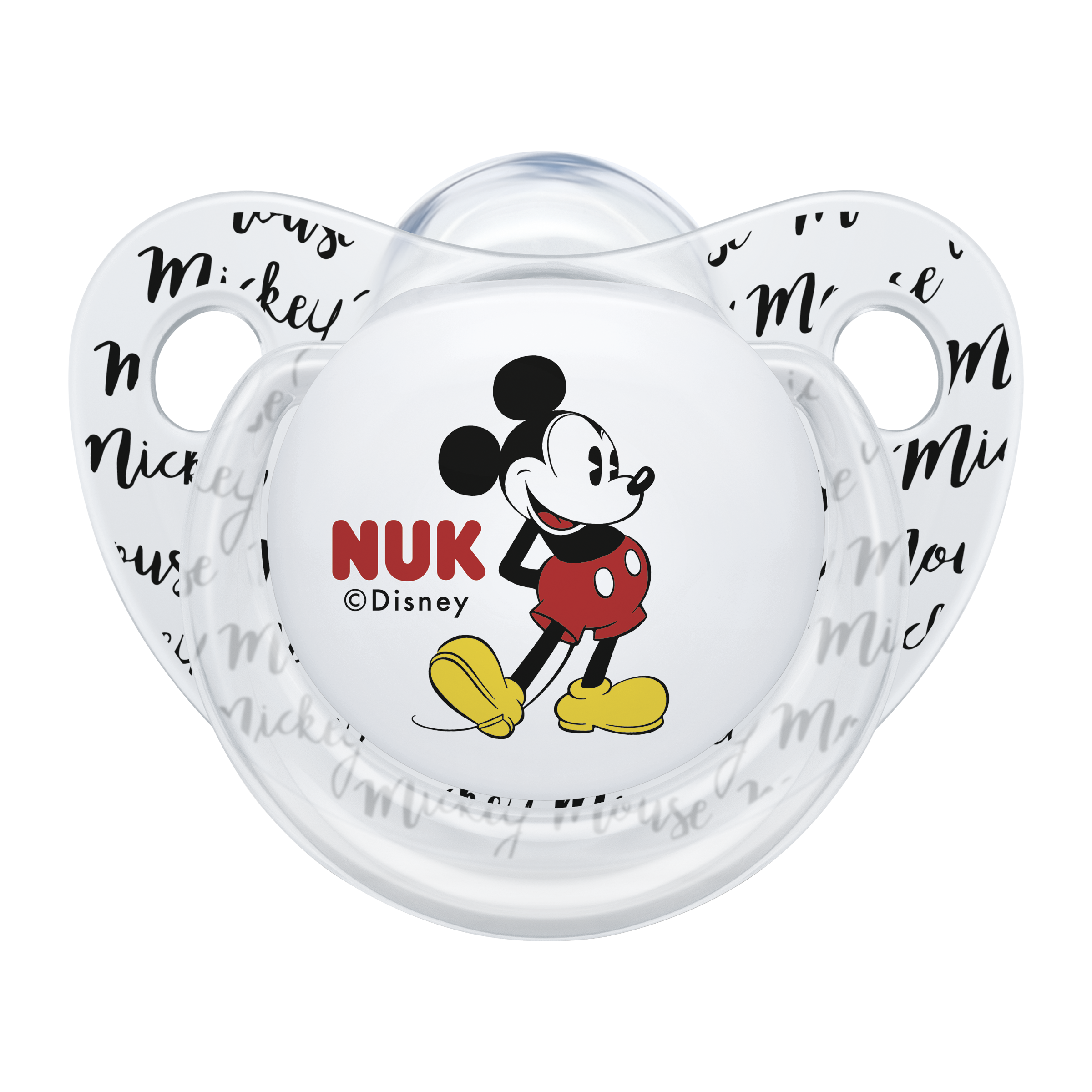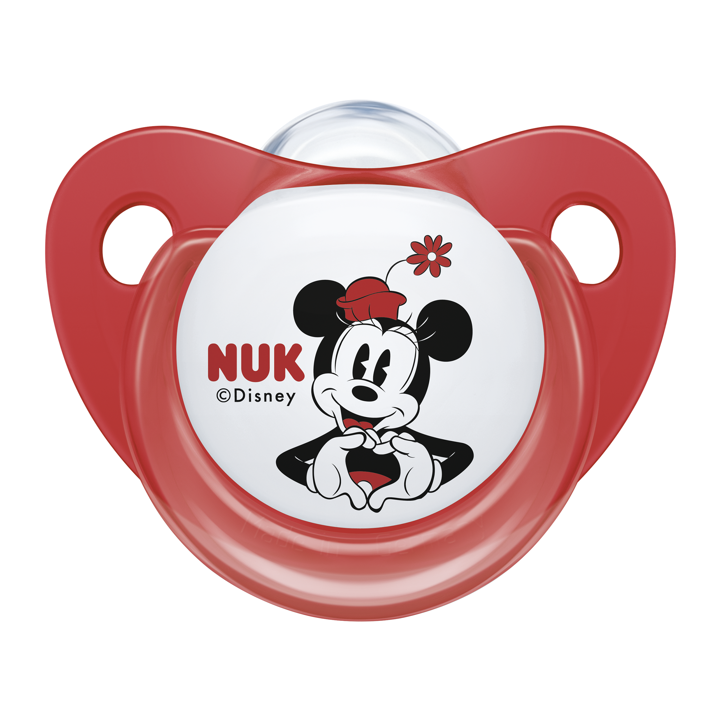 Od malých objevitelů po módní ikony - NUK Trendline dudlíky z naší kolekce "Mickey Mouse" jsou dekorovány roztomilými motivy populárních Disneyových postaviček Minnie a Micky Mouse pro každého malého Disney fanouška. Anatomicky tvarovaná vnější část dudlíku nezpůsobuje otlačeniny, a proto je dudlík ideální pro pohodlné usínání na boku i na břiše. Průhledný silikon se snadno čistí, je chuťově neutrální, bez zápachu a je odolný vůči vysokým teplotám. Neobsahuje škodlivé látky, je odolný při vyváření a má hladký povrch. Všechny dudlíky NUK mají NUK Air System, který umožňuje únik vzduchu ze savičky, aby jej dítě nepolykalo. Díky tomuto systému zůstává dudlík měkký a snadno se přizpůsobí dětským ústům. Multifunkční balení Dudlík NUK Disney Mickey má navíc svou vlastní praktickou krabičku. Ta se postará o hygienické čištění dudlíku v mikrovlnné troubě, cestování i skladování v čistotě a bezpečí.