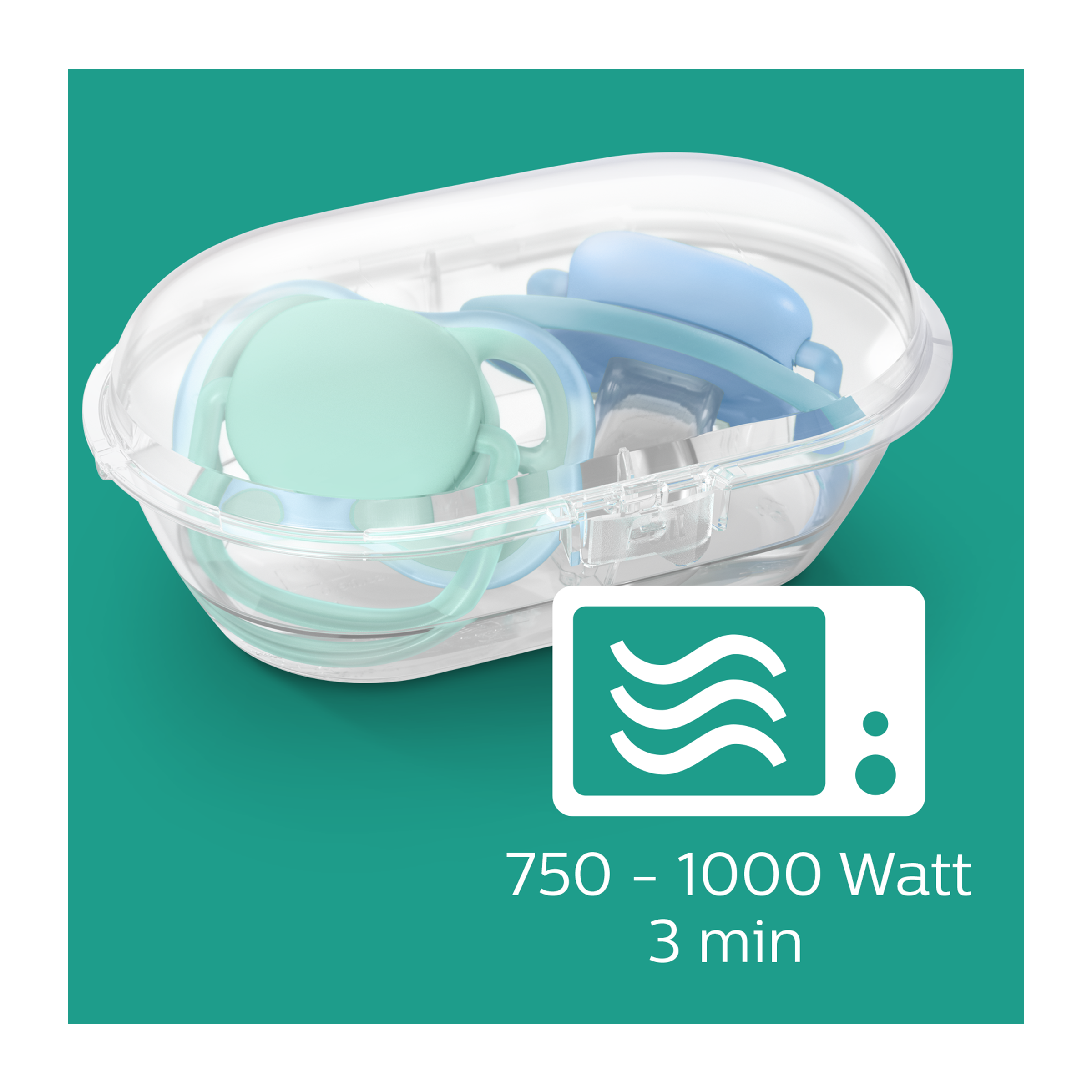 Ortodontický dudlík - ortodontické, symetrické, měkké silikonové dudlíky jsou navrženy tak, aby podporovaly přirozený vývoj ústní dutiny. Miminko se cítí přirozeně. Texturovaný silikonový dudlík je navržen tak, aby dítěti připomínal maminčin prs. Sterilizuje za 3 minuty. Cestovní pouzdro dodávané s šidítky Ultra Soft a Ultra Air, slouží také jako sterilizátor. Stačí přidat trochu vody a vložit jej do mikrovlnné trouby. Můžete být klidní, šidítko bude před dalším použitím čisté.