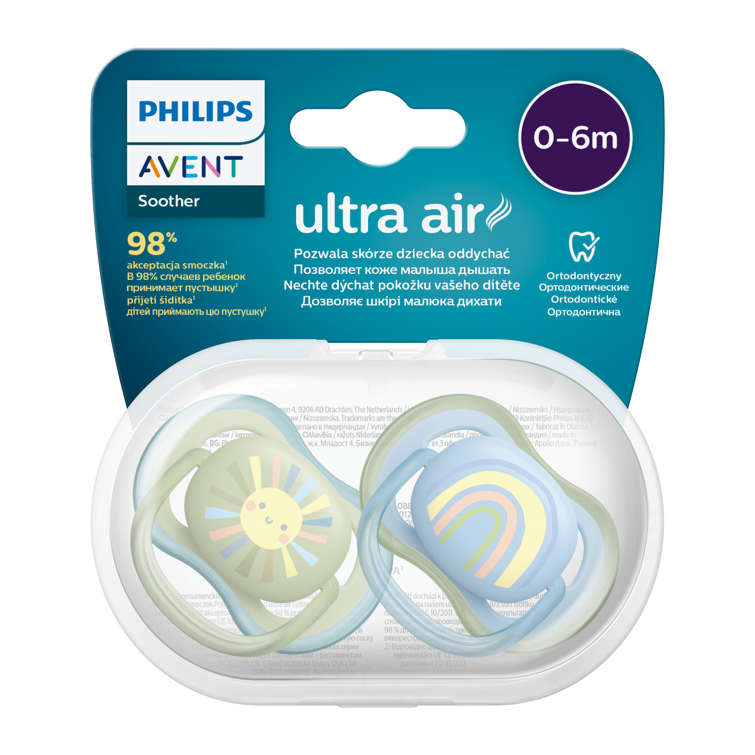 Philips AVENT Šidítko Ultra air 0-6m chlapec (duha), 2 ks