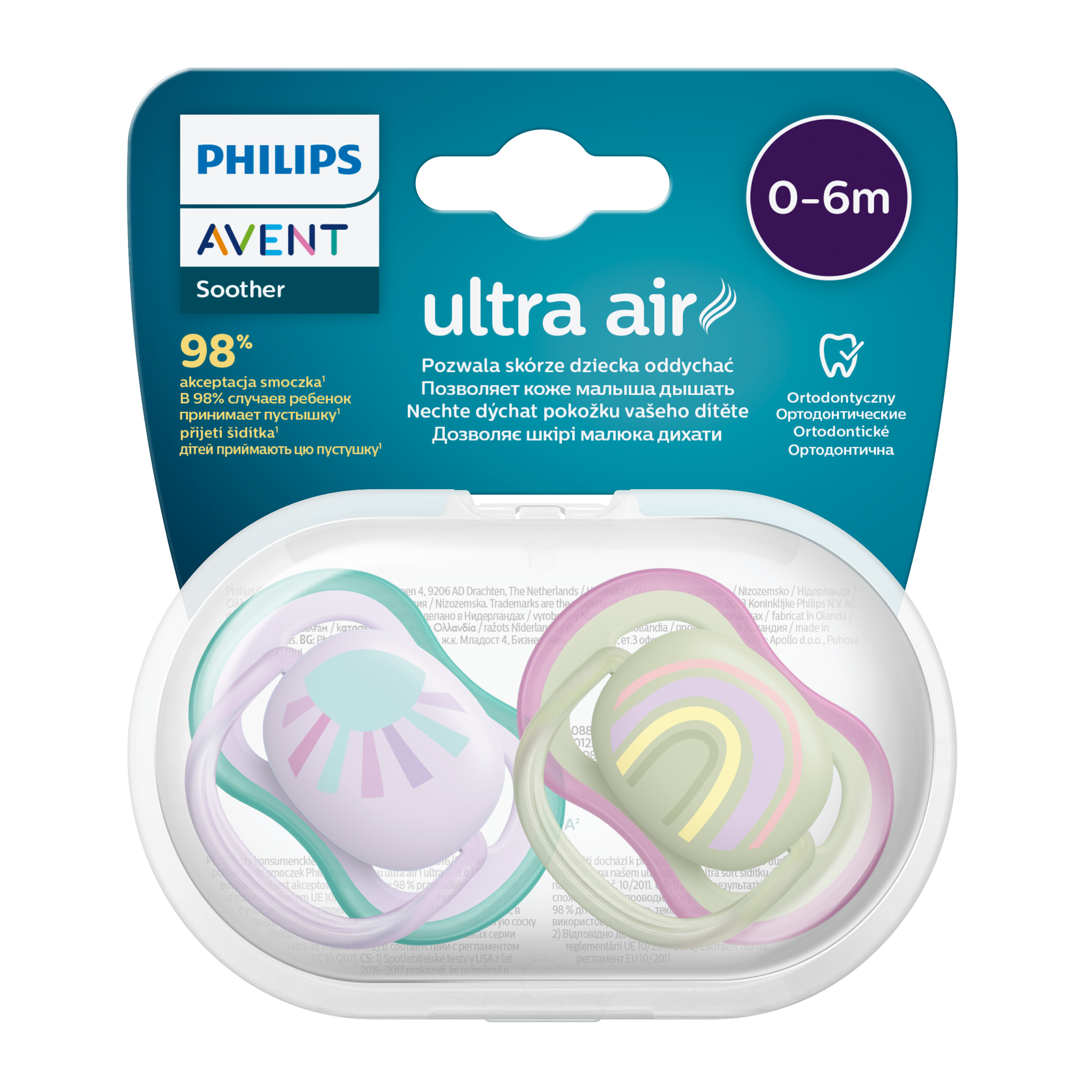 Philips AVENT Šidítko Ultra air 0-6m dívka (duha), 2 ks