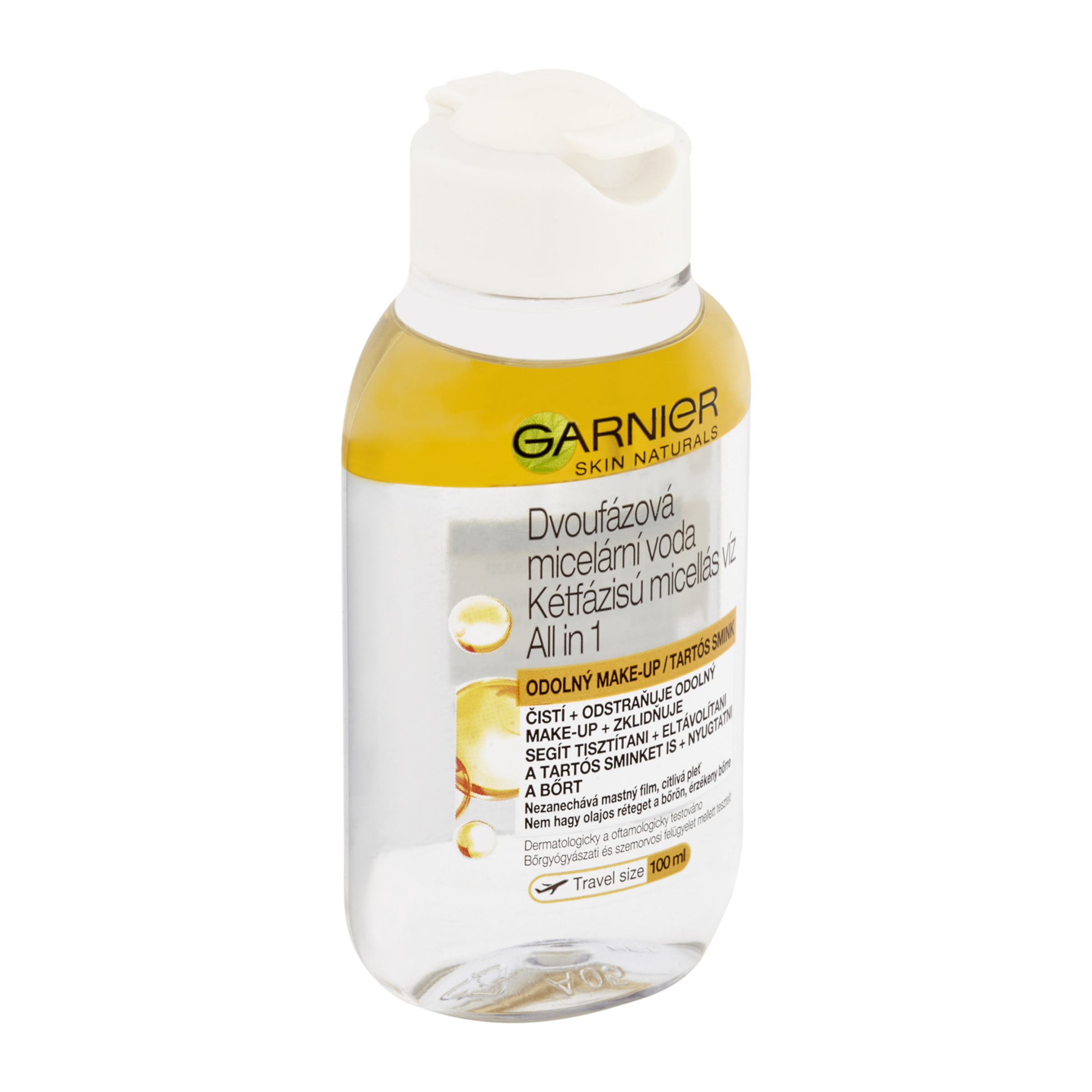 Díky složení obohacenému o micely, odličovací oleje a velmi účinný arganový olej, dvoufázová micelární voda Garnier Skin naturals odstraňuje všechny typy make-upu, eliminuje nečistoty a zklidňuje pleť jedním tahem. Výsledkem je velmi hebká pleť bez mastného filmu.