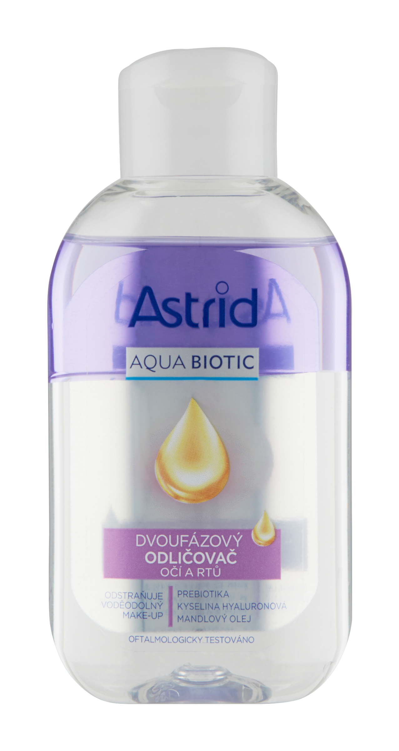 Astrid Aqua Biotic Dvoufázový odličovač očí a rtů účinně a zároveň šetrně odstraňuje voděodolný make-up a jemně pečuje o okolí očí a rtů. Složení obohacené o kyselinu hyaluronovou a mandlový olej pomáhá v pleti udržet přirozenou úroveň hydratace a zanechává ji dokonale čistou, hladkou a chráněnou. Obsažená prebiotika pečují o mikroflóru pokožky a podporují její zdravou vyváženost.