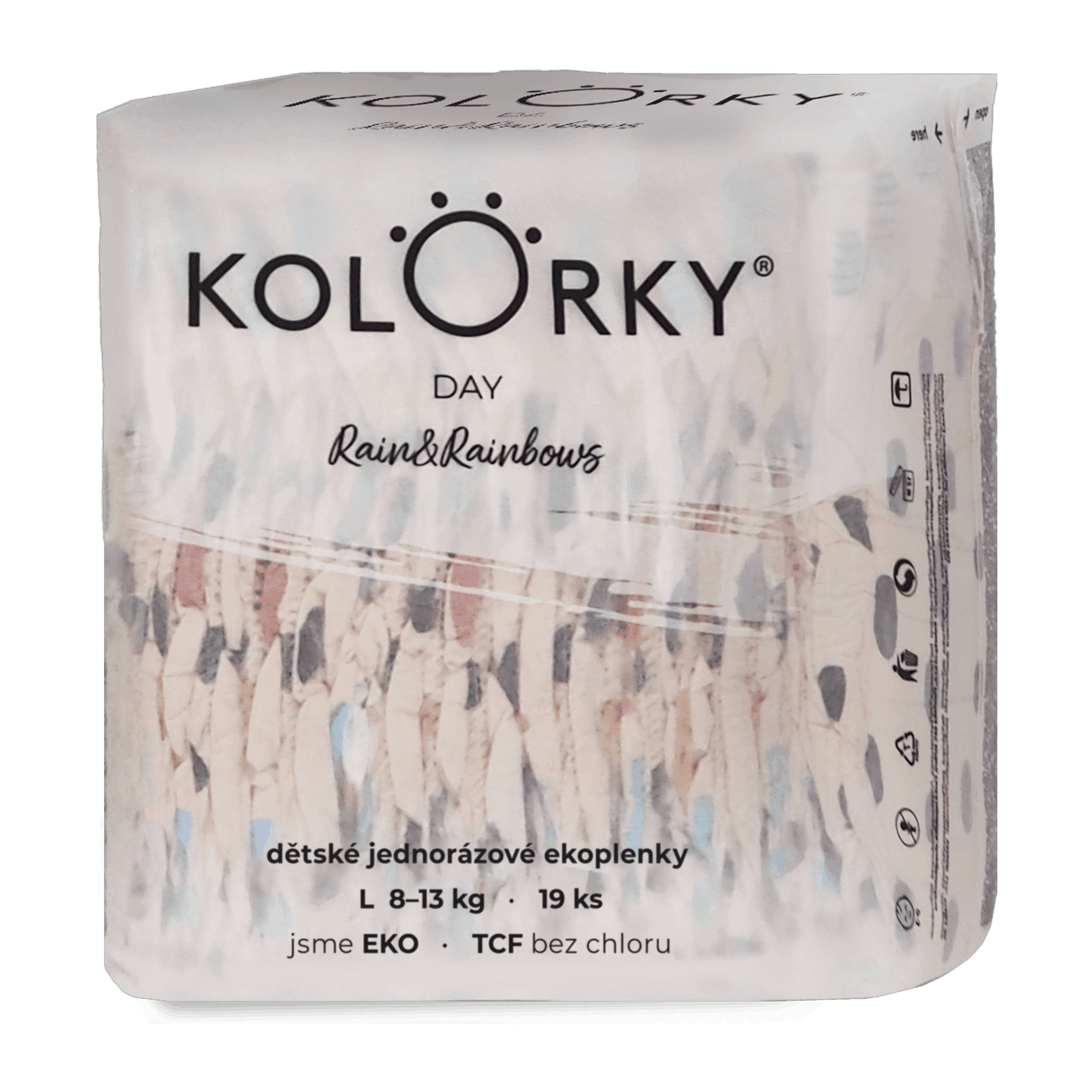 Česká značka Kolorky přináší stylové ekoplenky, které myslí na přírodu i vaše dítě. Originální design dodává každému přebalování nádech radosti a hravosti. Plenky Kolorky Day jsou navrženy tak, aby dokonale seděly, nikde netlačily a udržely pokožku miminka v suchu a pohodlí po celý den.