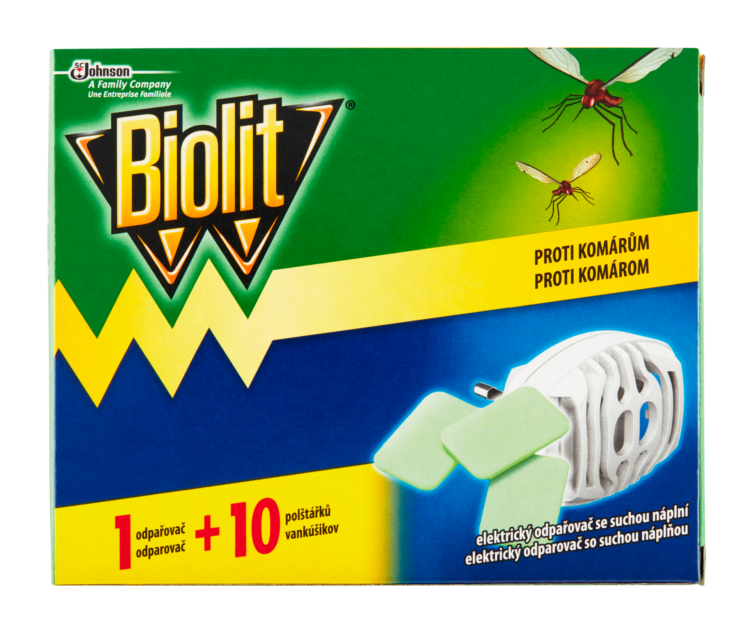 Biolit® náhradní polštářky a el. odpařovač, insekticid proti komárům. Přípravek poskytuje ochranu proti komárům až 8 hodin. Přípravek začne působit během 10 minut.