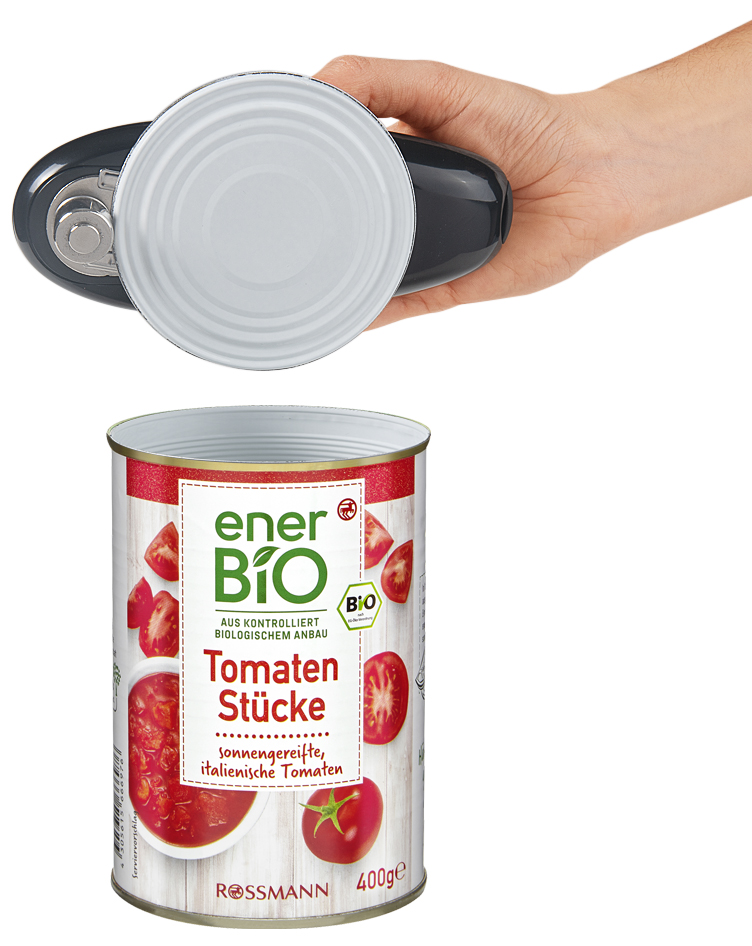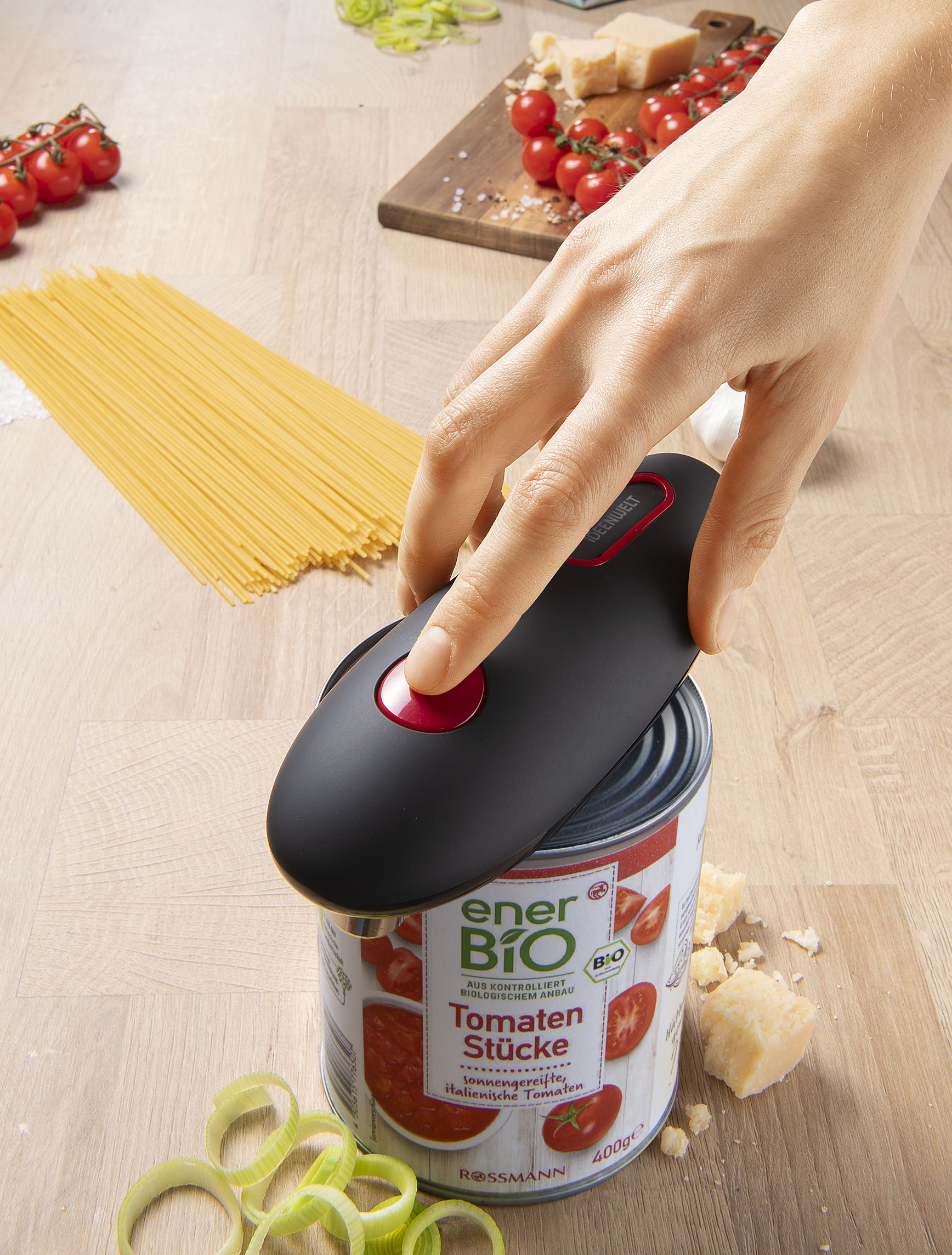 Otevřete konzervy rychle, bezpečně a bez námahy. Tento praktický elektrický otvírák pracuje zcela automaticky – stačí stisknout tlačítko a víčko se samo oddělí. Díky magnetu jej snadno sejmete, aniž byste se dotkli ostrých hran.