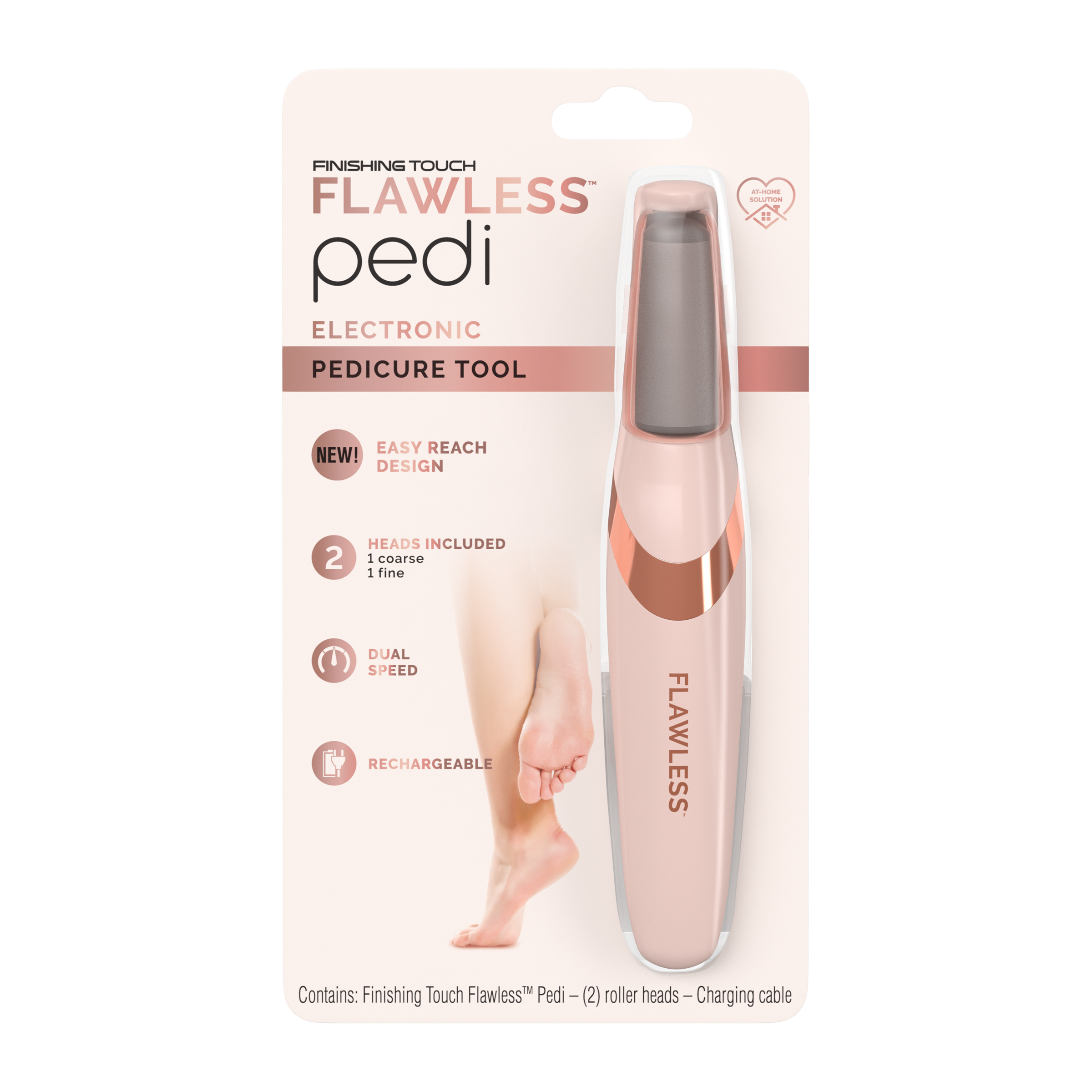 Perfektní řešení pro domácí pedikúru jako ze salonu! S Flawless PEDI snadno odstraníte mozoly a suchou popraskanou pokožku bezpečným způsobem. Obsahuje 2 válečkové hlavice: jednu hrubou pro vyhlazení nepoddajných mozolů a odumřelé kůže a jednu jemnou pro zaleštění a každodenní údržbu Disponuje dvěma rychlostmi (nízká a vysoká), které umožňují snadnou nebo výkonnější údržbu Součástí balení je USB nabíjecí kabel.