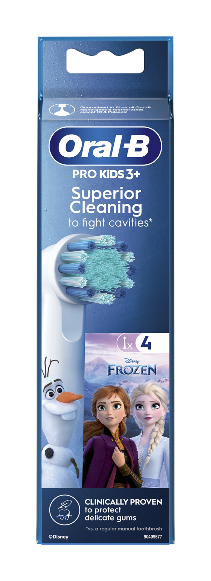 Kartáčková hlava Oral-B Kids 3+ pobaví děti motivem z Disney Ledového království a jako produkt doporučovaný zubními lékaři současně vyčistí zuby šetrně a účinně. Extra měkká vlákna a malá kulatá kartáčková hlava jsou speciálně navrženy pro děti a jsou kompatibilní se všemi elektrickými zubními kartáčky Oral-B Kids.