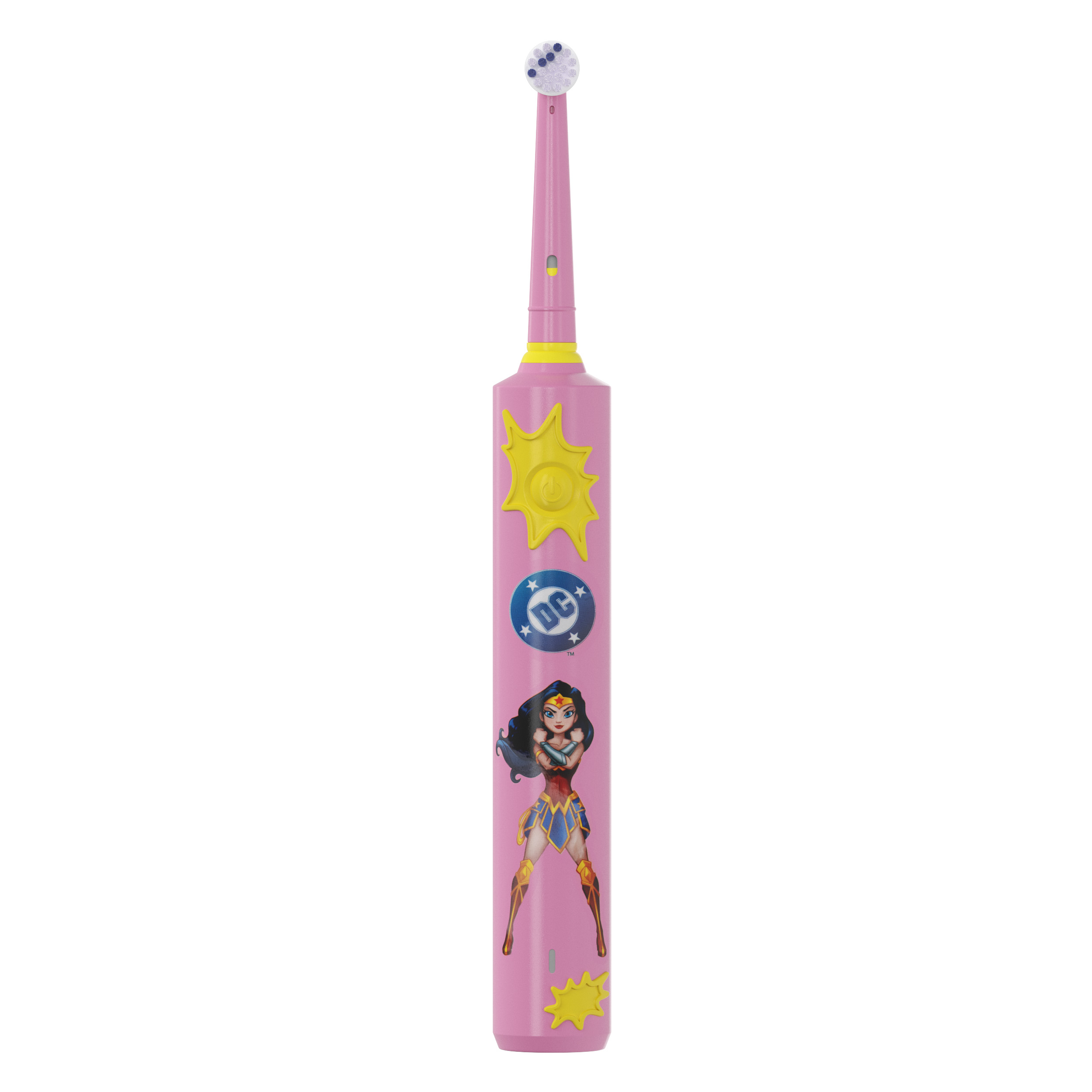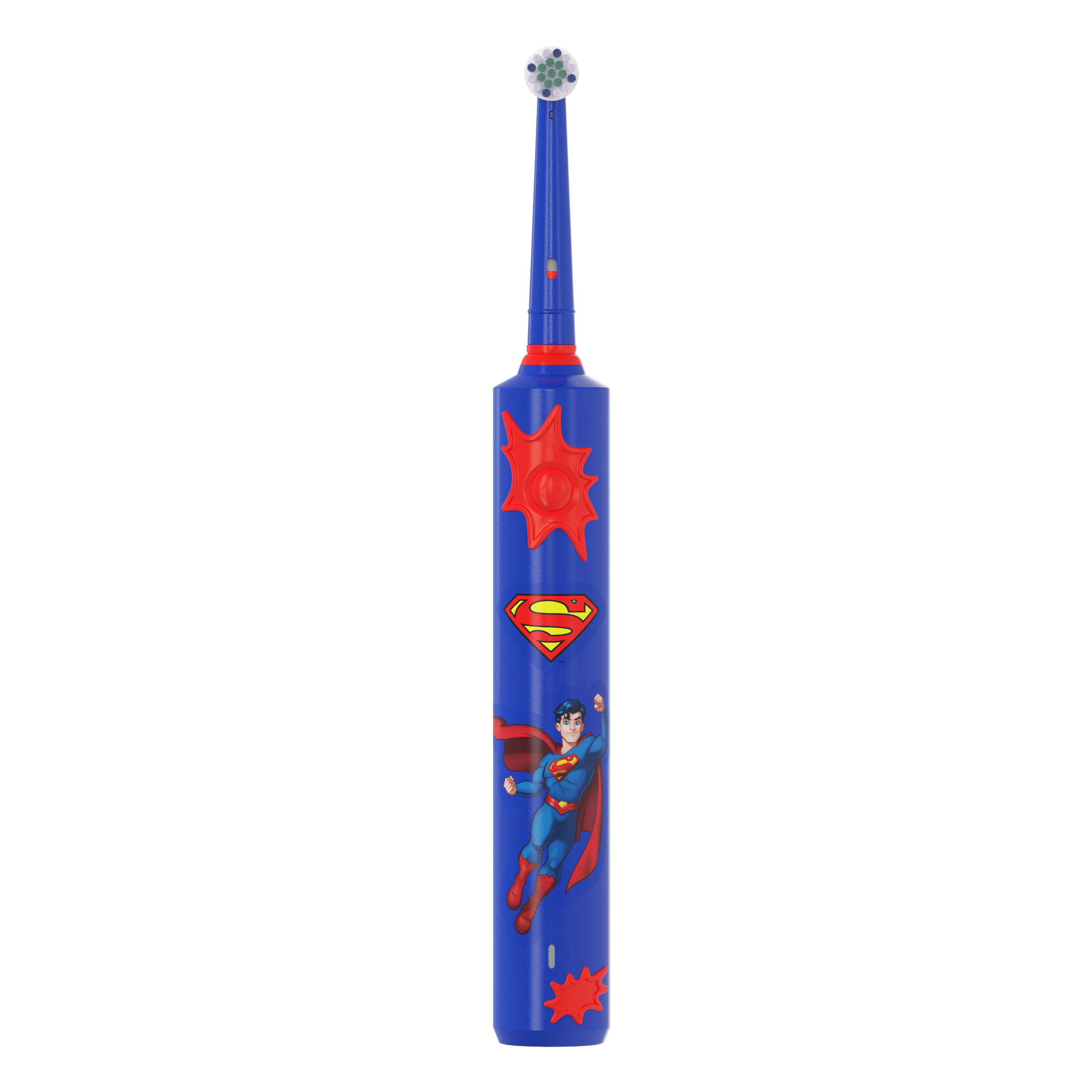 Jemné zaoblené štětinky zajišťují šetrné, ale důkladné čištění a chrání dásně před podrážděním. Kartáček je vybaven senzorem přítlaku, který pomáhá předcházet příliš silnému tlaku při čištění. Součástí balení jsou 3 samolepky, kterými si děti mohou kartáček ozdobit. Díky hravému designu se superhrdiny je čištění zubů pro děti zábavnější a motivuje je k pravidelné dentální hygieně.