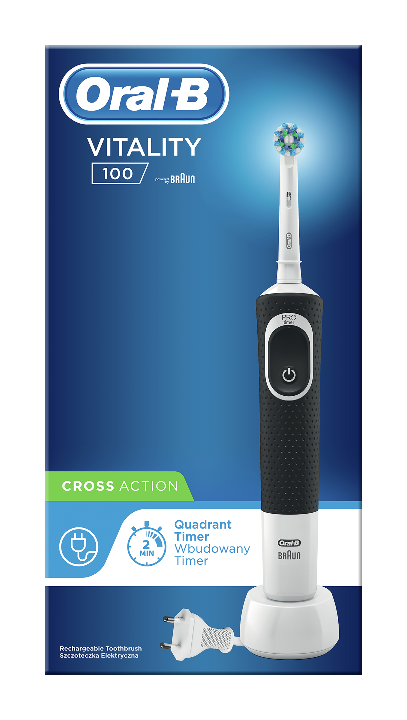 Elektrický zubní kartáček Oral-B Vitality zajišťuje v porovnání s běžným manuálním zubním kartáčkem klinicky ověřenou špičkovou čistotu ústní dutiny. Časovač zabudovaný v rukojeti zubního kartáčku pomáhá dodržovat zubními lékaři doporučované 2 minuty čištění. Navíc vám ho přináší Oral-B, zubními lékaři nejpoužívanější značka zubních kartáčků na světě.