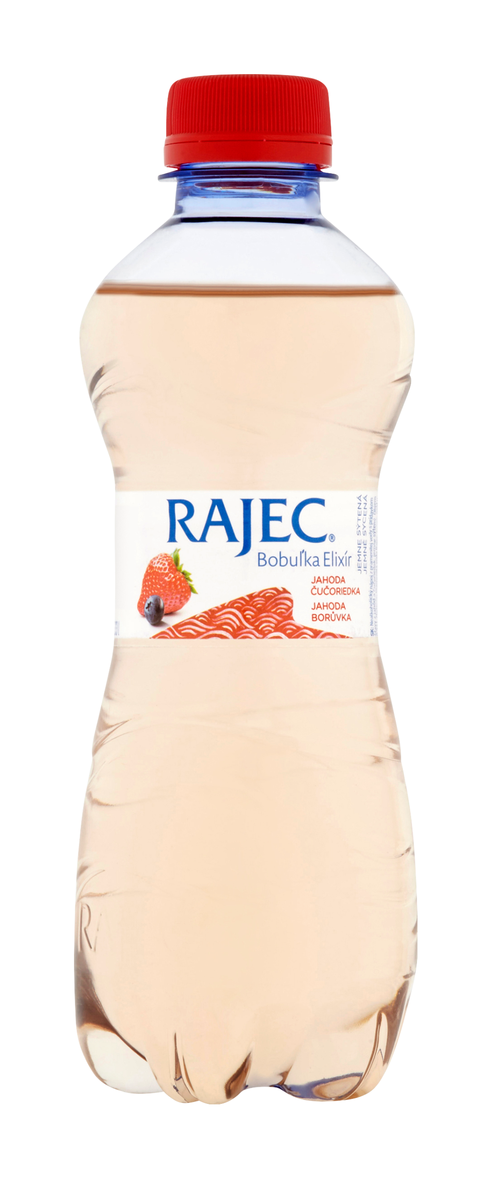 Pramenitá voda Rajec, Cukr, Oxid uhličitý (min. 1g/l), Citronová šťáva z koncentrátu, Extrakt jahody (100 mg/l), Extrakt borůvky (100 mg/l), Rostlinný koncentrát (mrkev), Přírodní aromata