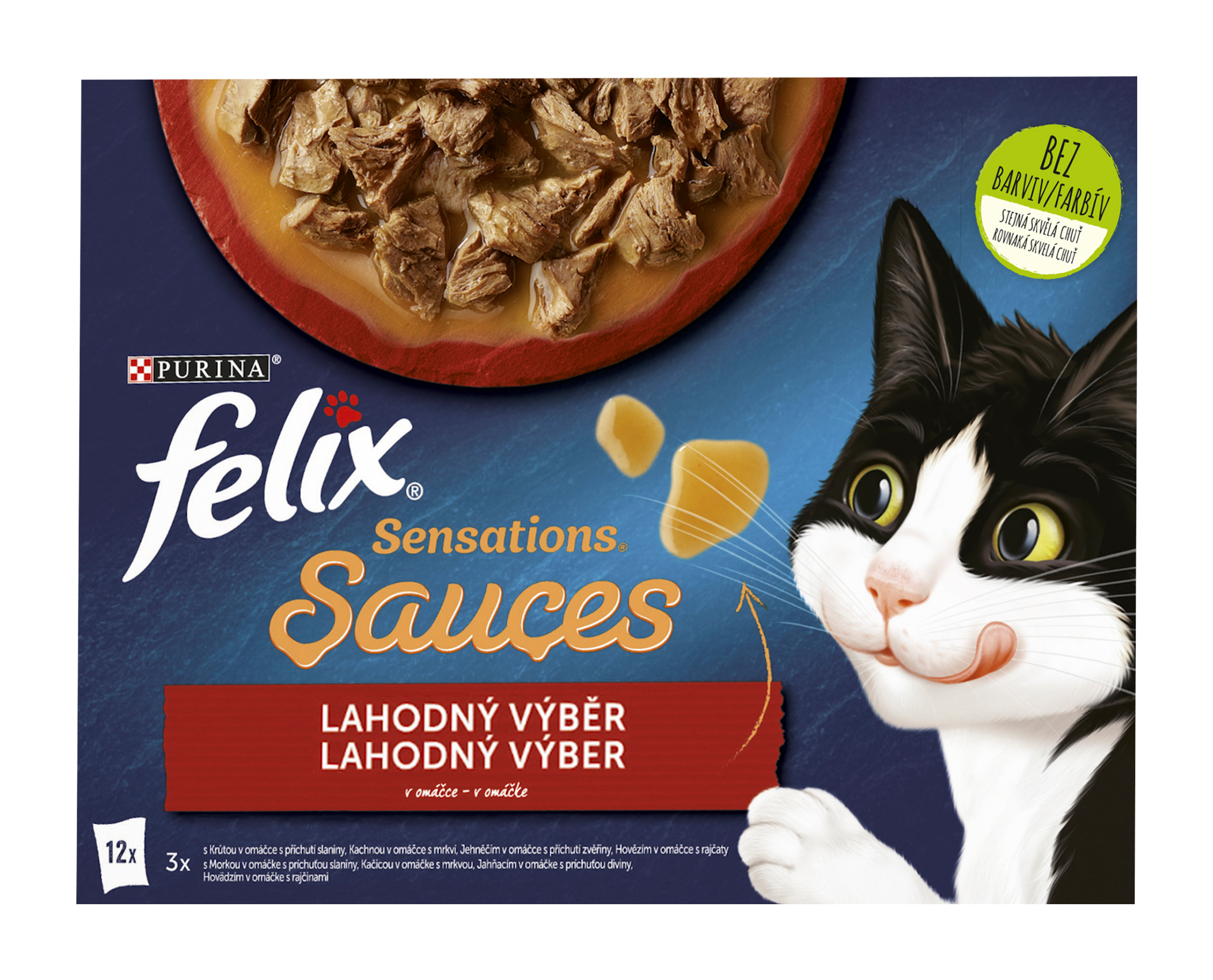 Kompletní krmivo pro dospělé kočky FELIX® Sensations® Sauces je řada neodolatelných krmiv vyrobených z kvalitních surovin, které výtečně vypadají, voní a samozřejmě lahodně chutnají vaší kočce. Každé krmivo FELIX Sensations Sauces obsahuje křehké kousky pro potěšení vaší kočky servírované v různě ochucených omáčkách pro mimořádnou chuť a lákavou vůni. Zároveň jsou zdrojem omega-6 mastných kyselin a mají správnou kombinaci vitamínů, aby udržely vaši kočku plnou energie a připravenou k uličnictví! Jsou plná dobrot a uspokojí 100 % denních potřeb vaší kočky, když jsou podávána podle krmného návodu. To není všechno! FELIX Sensations Sauces jsou dostupné v celé řadě kombinací chutí v neodolatelných omáčkách! Takže pokud máte to štěstí mít tak senzační kočku jako je FELIX, uspokojte každý den její lásku po rozmanitosti s krmivem FELIX Sensations Sauces! FELIX je prostě neodolatelný! 100% kompletní a vyvážené Vitamíny D a E Zdroj omega-6 mastných kyselin, bez přidaných umělých konzervantů.