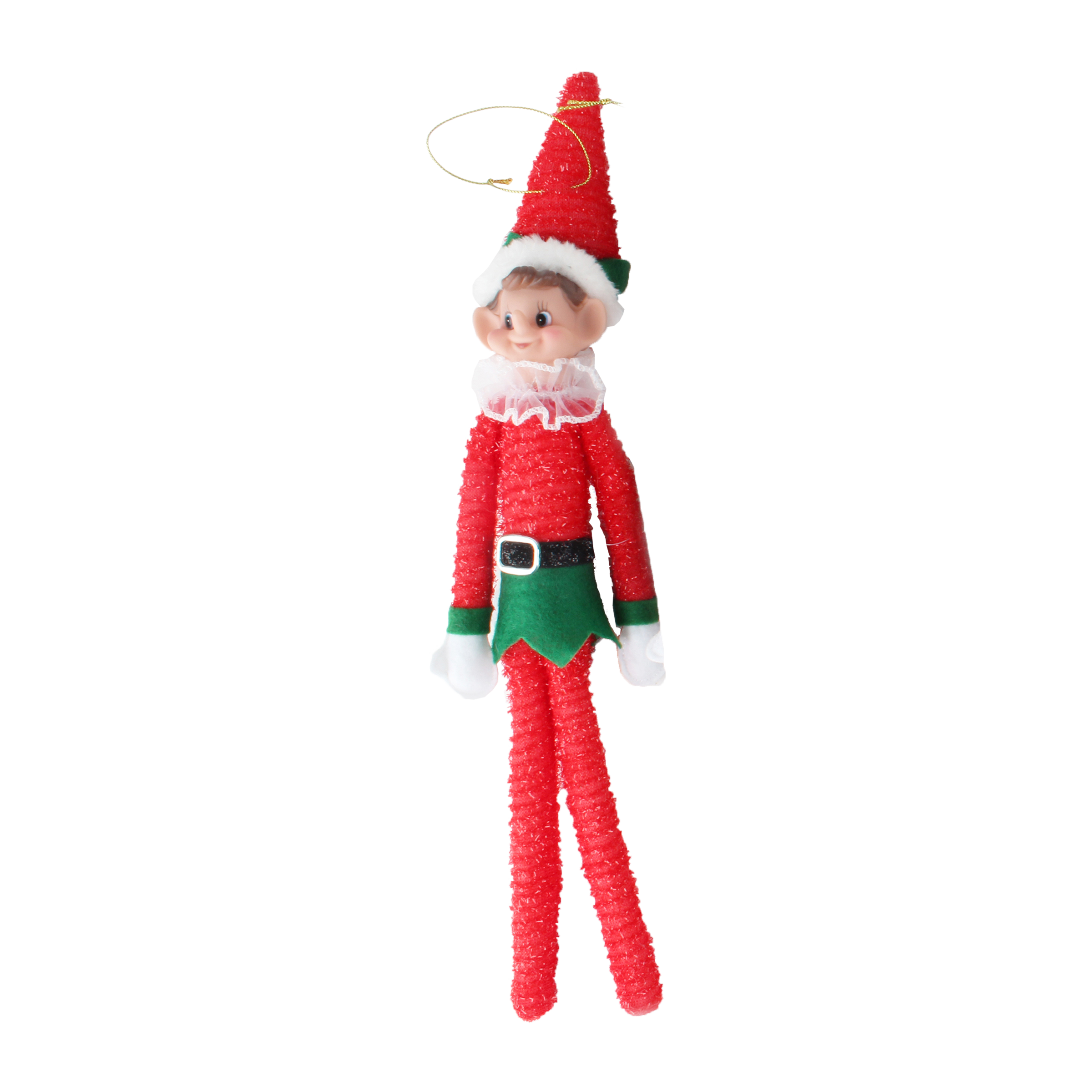 Stylová figurka vánočního elfa v červenozeleném oblečku s bílými detaily a zlatým závěsem je ideální ozdobou na stromeček, věnec nebo sváteční aranžmá. Veselý design dodá vašemu interiéru hravý nádech a podtrhne kouzlo Vánoc. Výška: 32 cm.