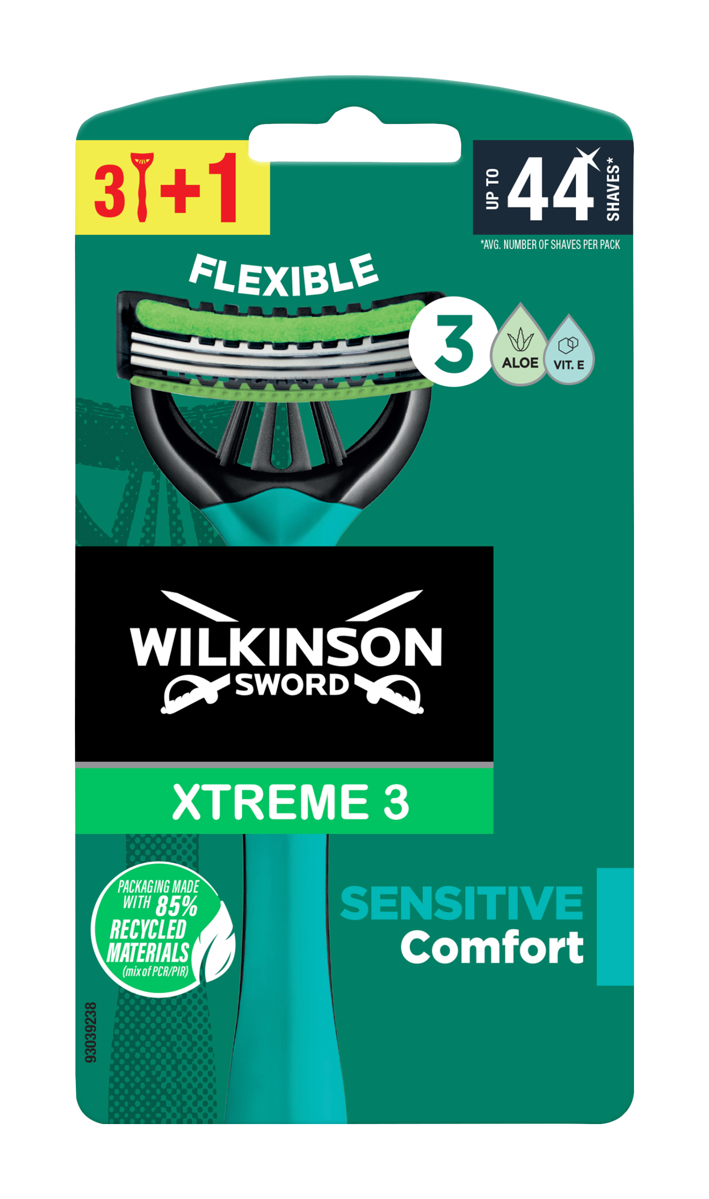 Holicí strojek se 3 flexibilními břity navržený tak, aby vydržel v průměru až 11 oholení. Komfort pro citlivou pokožku při jakémkoli úhlu.