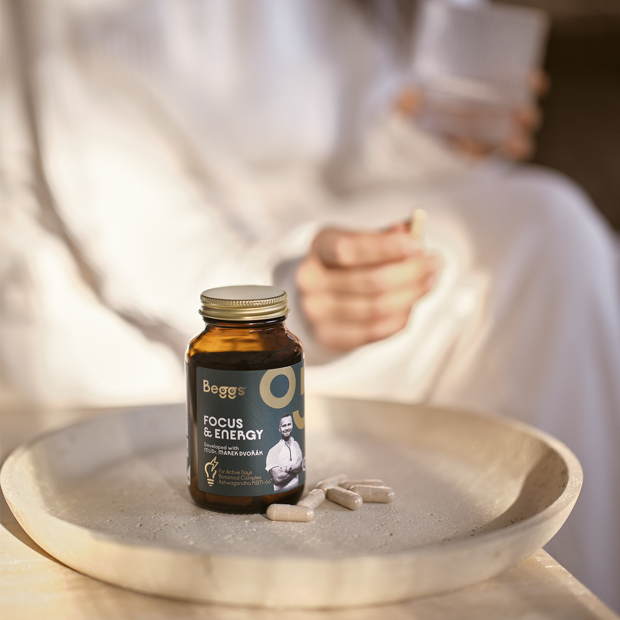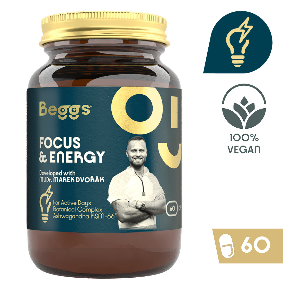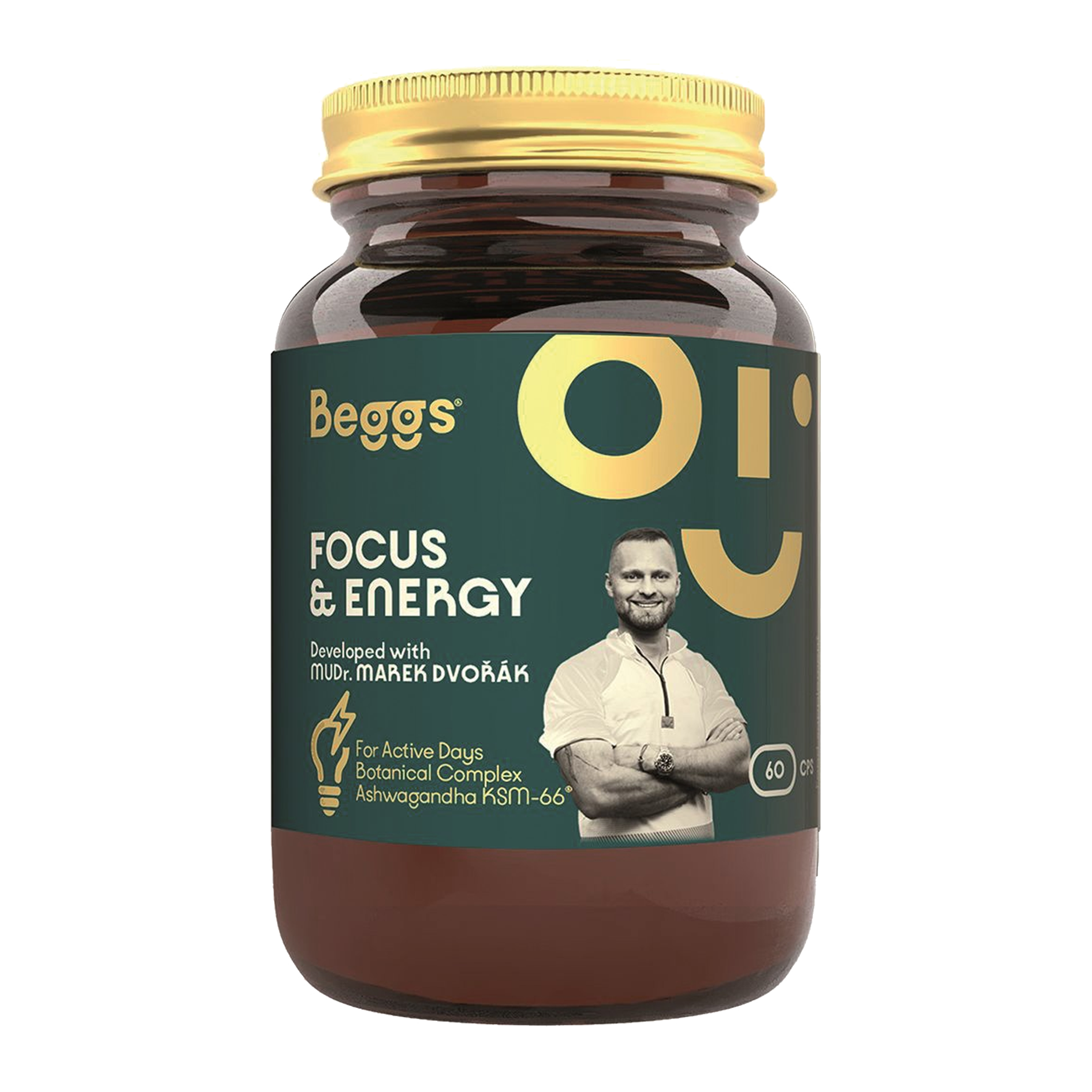Beggs Focus & Energy je prémiový doplněk stravy pro podporu energie, soustředění a duševní pohody. Byl vyvinut ve spolupráci s MUDr. Markem Dvořákem, lékařem urgentní medicíny a odborníkem na prevenci a zdravý životní styl.