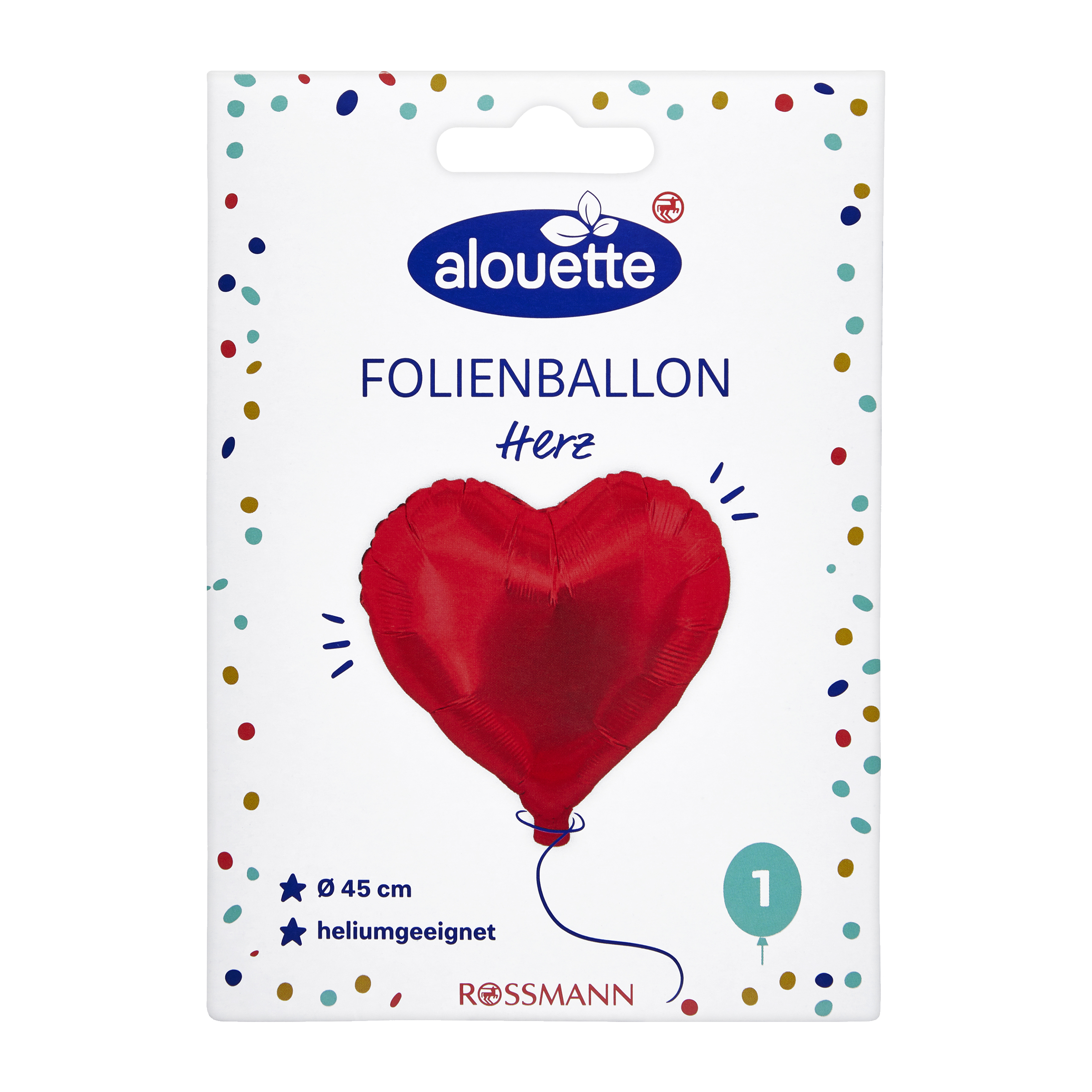 Foliový balónek ve tvaru srdce s pomůckou pro nafukování a nylonovou nití pro zavěšení.