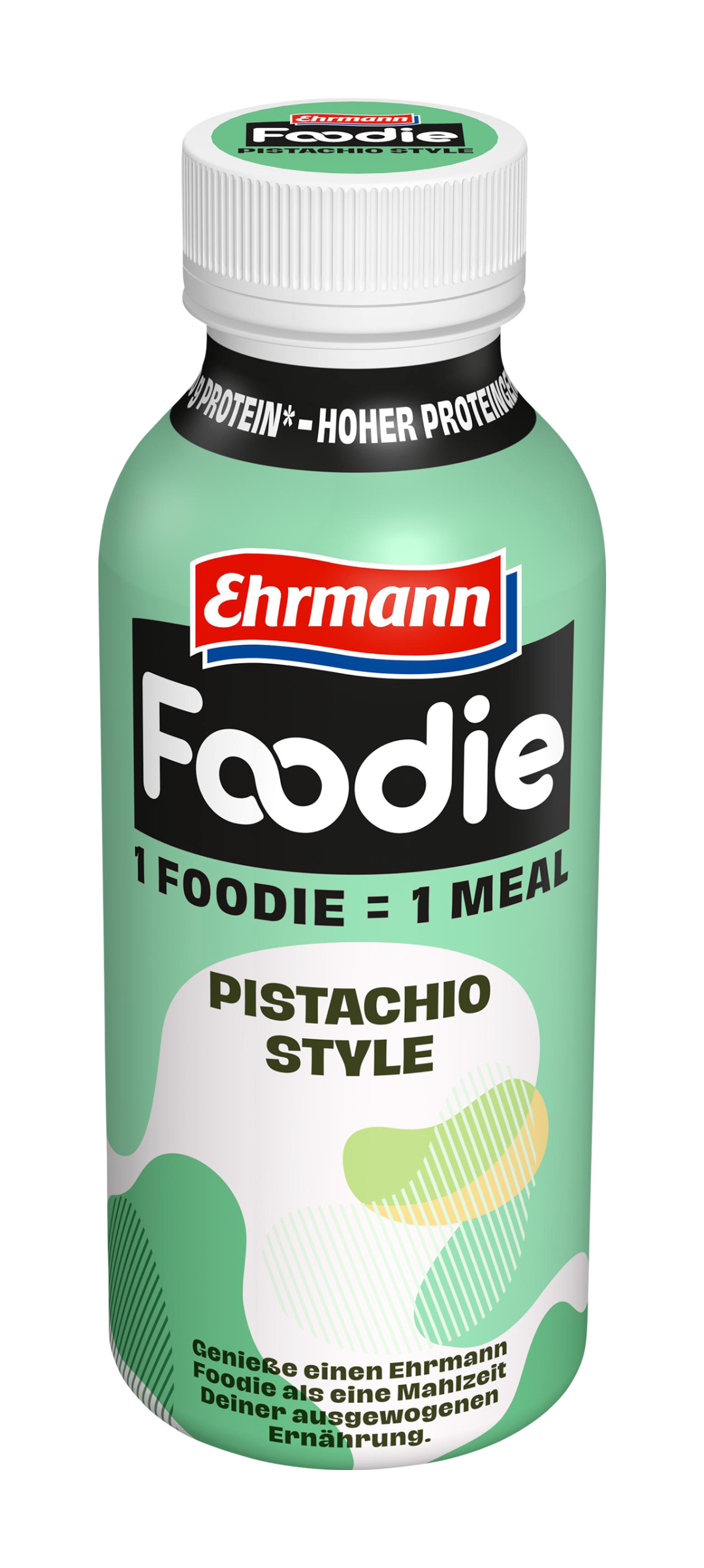 1 Foodie= 1 jídlo. Ehrmann Foodie je lahodné jídlo v podobě nápoje s důležitými živinami, které vaše tělo potřebuje. Láhev o obsahu 400ml obsahuje 30g bílkovin, neobsahuje laktózu, lepek a přidané cukry*.