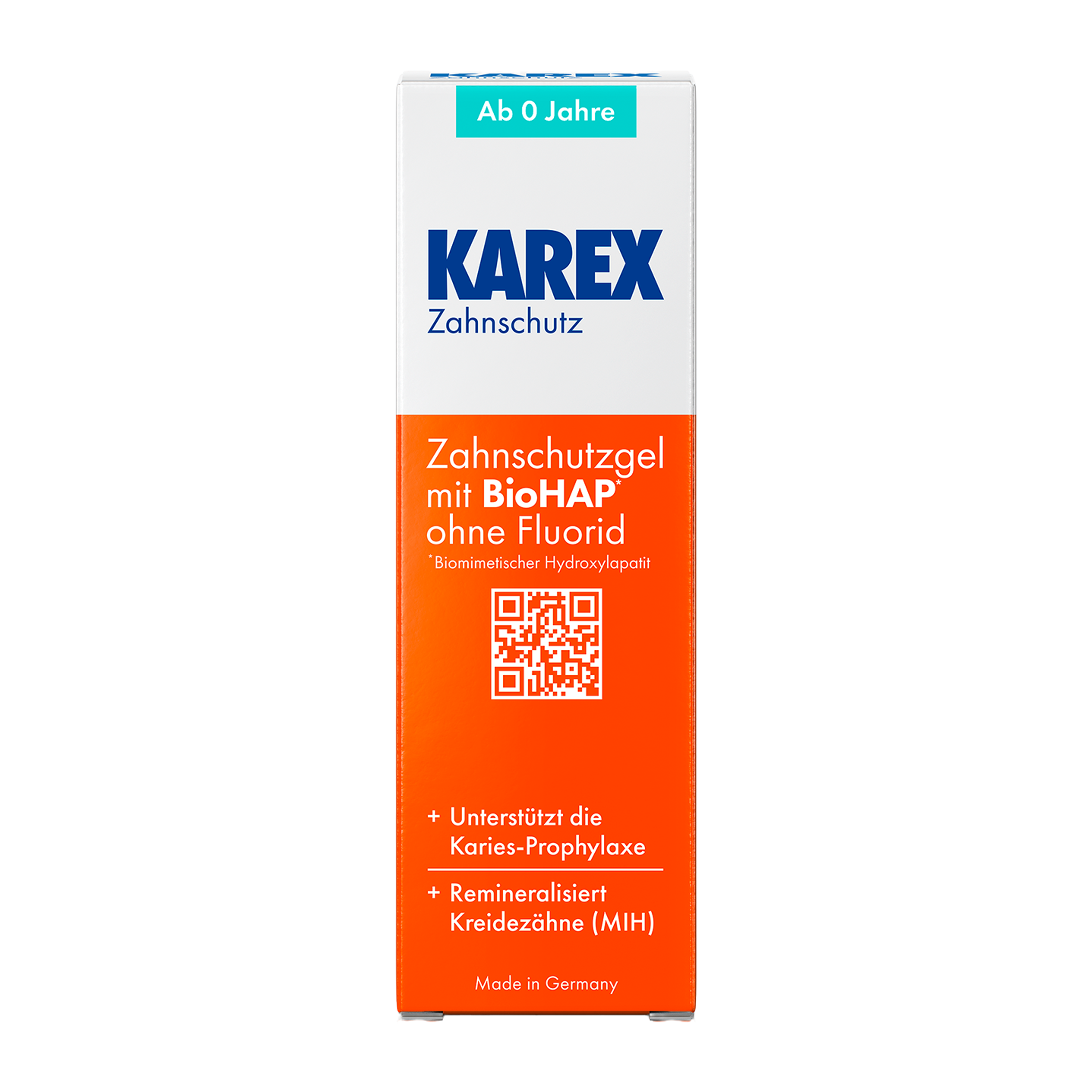 KAREX Gel na ochranu zubů, jako doplněk zubní pasty, poskytuje účinnou prevenci před tvorbou zubního kazu. Díky obsahu BioHAP (biomimetickému hydroxyapatitu) vytváří na zubech ochrannou vrstvu, která remineralizuje zubní sklovinu a pomáhá snižovat citlivost zubů způsobenou její hypomineralizací. Gel může také pomoci zmírnit bolest spojenou s tvorbou křídových skvrn (MIH). Díky tomu, že neobsahuje fluorid je bezpečný i pro malé děti od narození. Je vhodný pro každodenní použití.