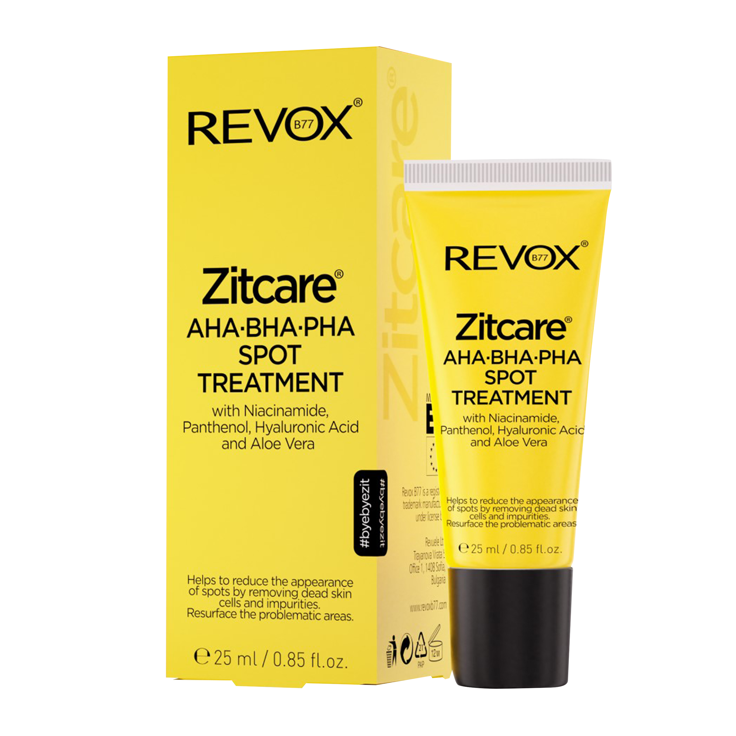 Směs kyselin AHA, BHA a PHA pomáhá redukovat výskyt skvrn tím, že odstraňuje odumřelé kožní buňky a nečistoty. Niacinamid má vyhlazující účinek, který pomáhá obnovovat pokožku v problematických oblastech, a zabraňuje vzniku suchých míst po aplikaci přípravku. Panthenol má zklidňující vlastnosti a pomáhá zjemňovat pokožku. Kyselina hyaluronová a Aloe vera pomáhají osvěžit a obnovit pokožku.