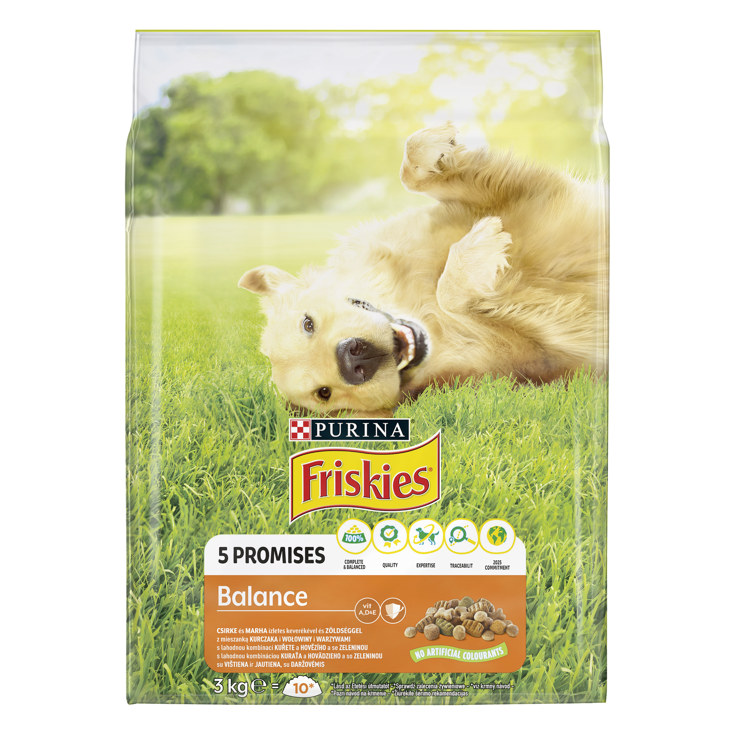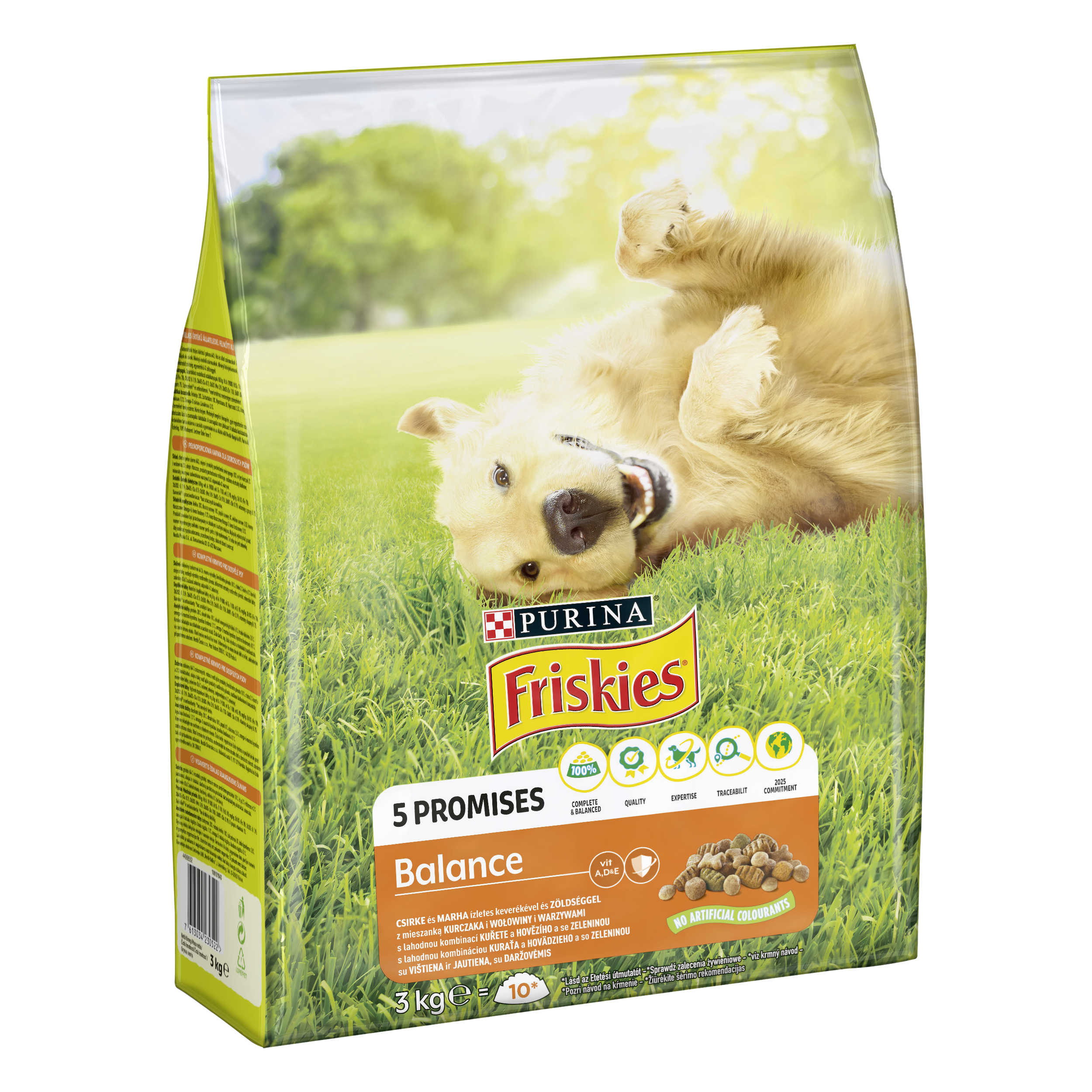 Friskies® Balance je zdrojem kvalitních bílkovin a dalších živin, které váš pes potřebuje ke šťastnému rodinnému životu. Friskies® 5 slibů Ve chvíli, kdy jste si přivedli domů psa, zavázali jste se, že o něj budete pečovat a správně ho krmit. Stejný slib jsme učinili i my ve Friskies®. Díky lahodnému a kvalitnímu krmivu přinášíme štěstí psům každý den již po celé generace. A s touto ctí zároveň přichází velká zodpovědnost, proto vždy děláme maximum pro vašeho psa a pro vás. 5 slibů, protože nám záleží na: