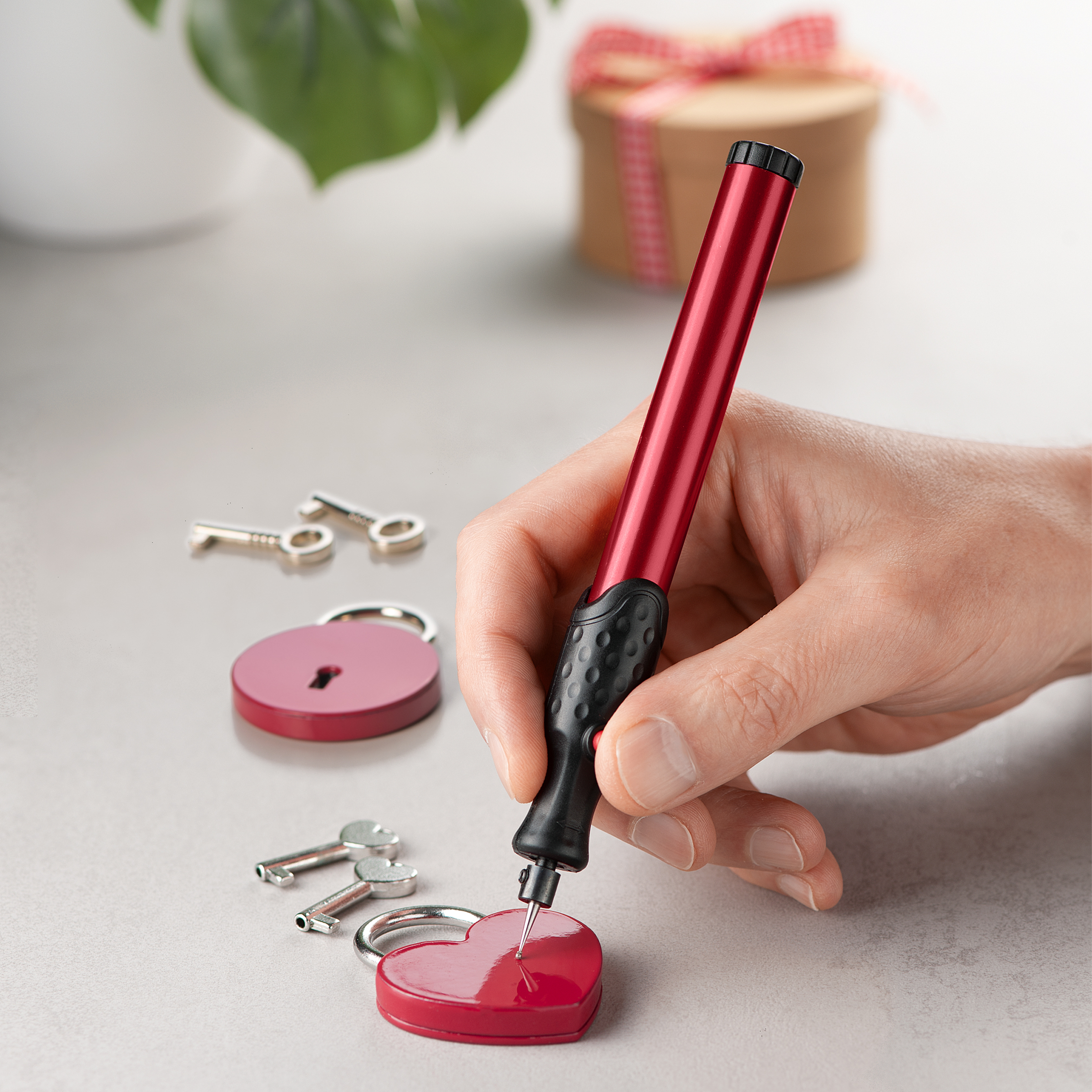 - vč.1 zámku lásky s klíči, 1 kulatého zámku s klíči a 2 odolných gravírovacích hrotů