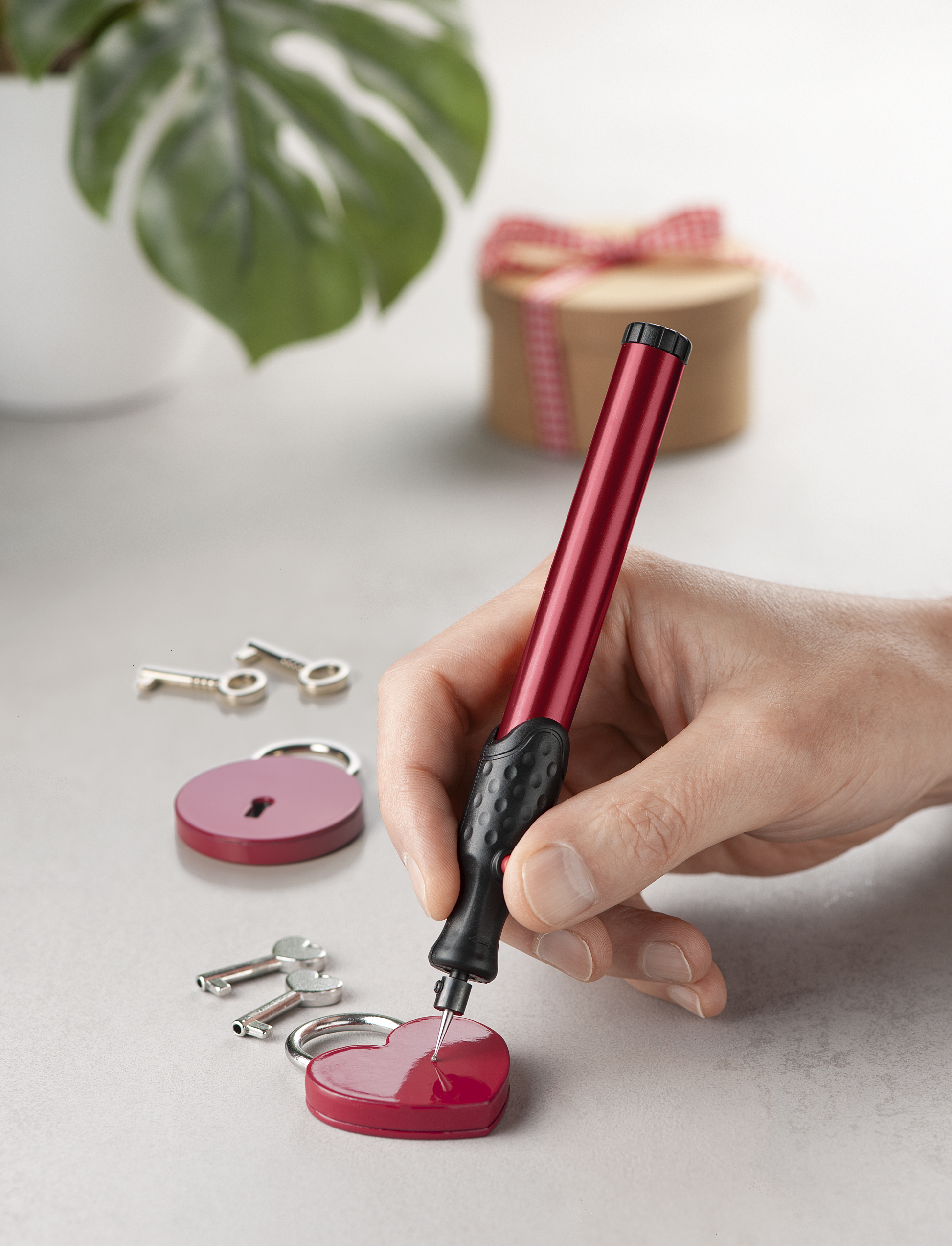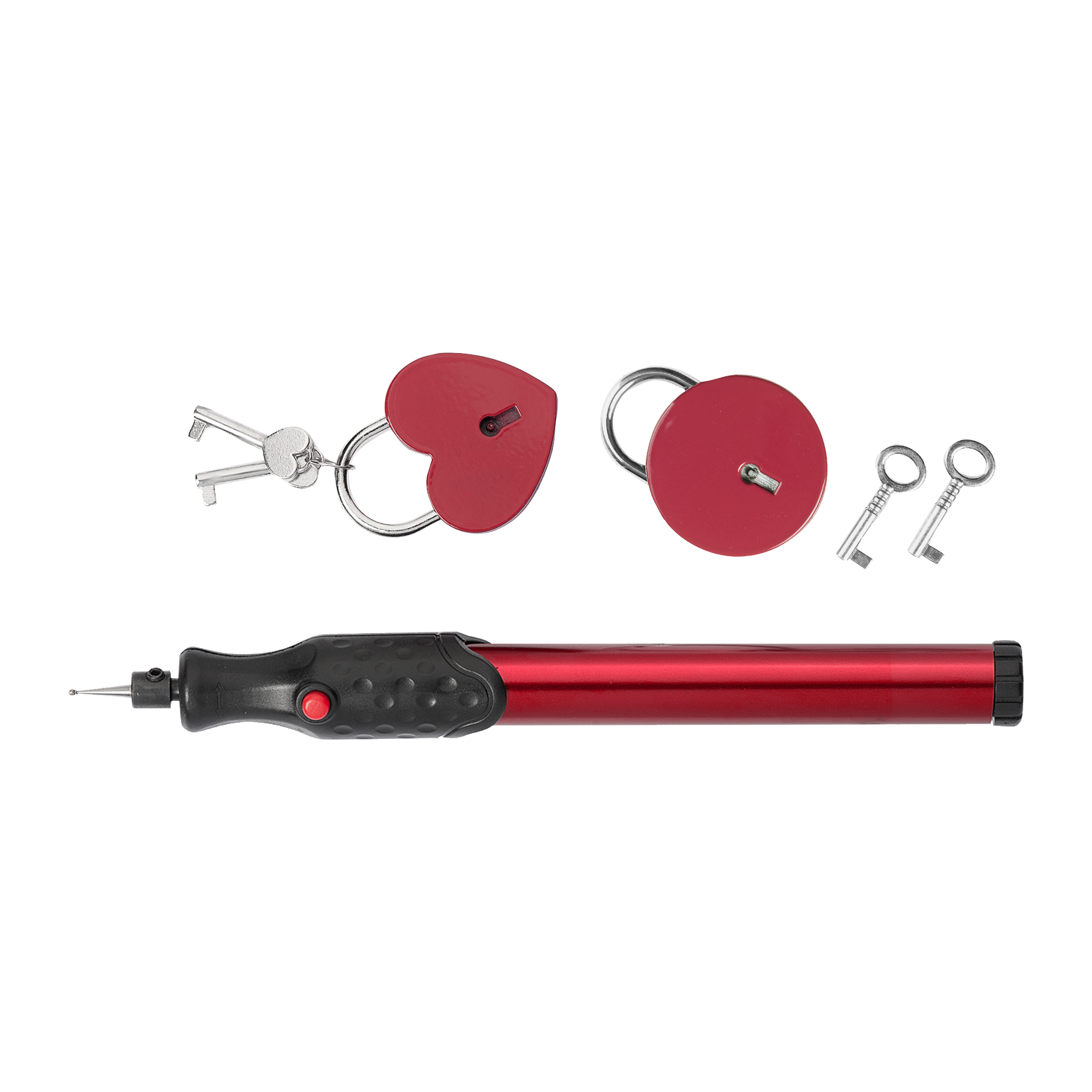 - Obsahuje 2 gravírovací hroty, 1 zámek ve tvaru srdce a 1 kulatý zámek s klíči