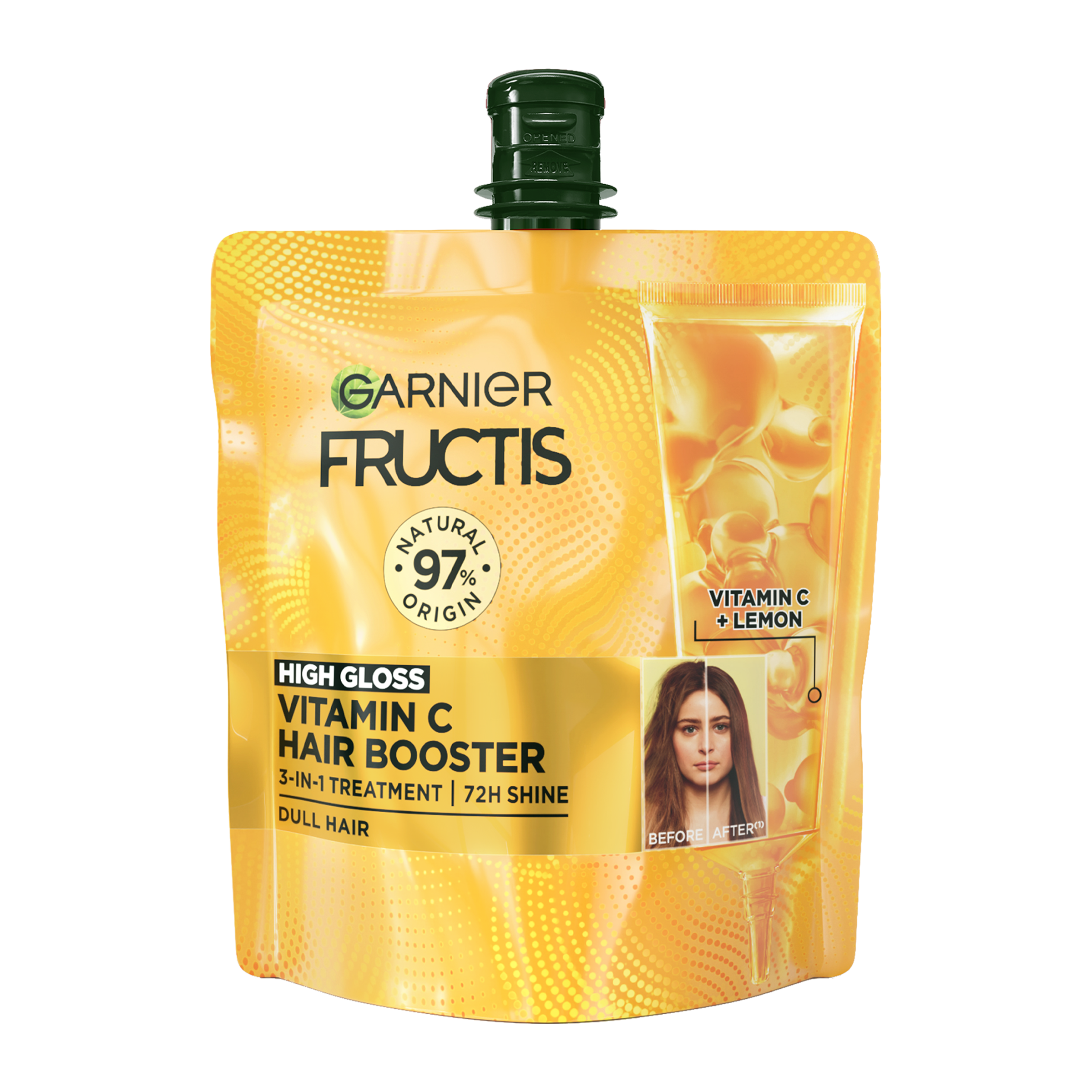 Naboostujte svou Hair Food vlasovou rutinu! Objevte naši nejintenzivnější 3v1 péči po umytí Vitamin C Hair Booster. Proniká až do hloubky 10 vrstev (2). Vyživuje a posiluje vlasové vlákno.