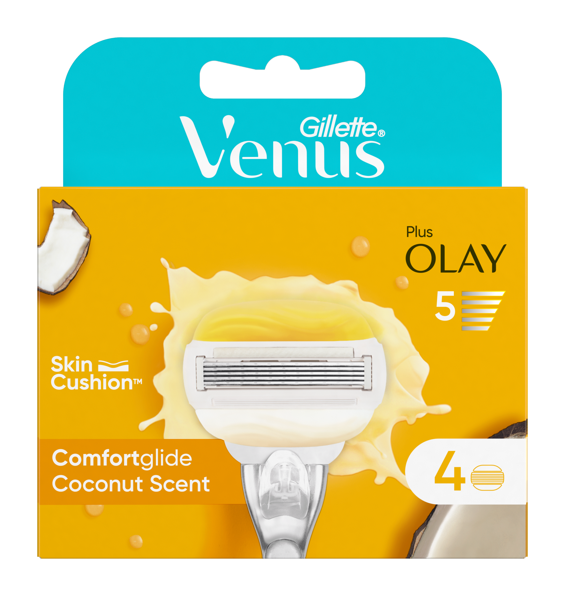 Břity dámských holicích strojků Venus jsou navrženy s ohledem na ženské tělo. Dámské holicí strojky Venus ComfortGlide Coconut Plus Olay mají 5 břitů zajišťujících hladké a dokonalé oholení, které vydrží. Holicí hlavice mají zvlhčující pásky Olay, které uvolňují tělová másla s jemnou vůní kokosu a umožňují hladký skluz a komfort. S výkyvnou hlavicí přizpůsobující se křivkám vašeho těla Všechny náhradní holicí hlavice Venus lze používat se všemi rukojeťmi holicího strojku Venus (s výjimkou Simply Venus a Venus pro úpravu linie bikin).