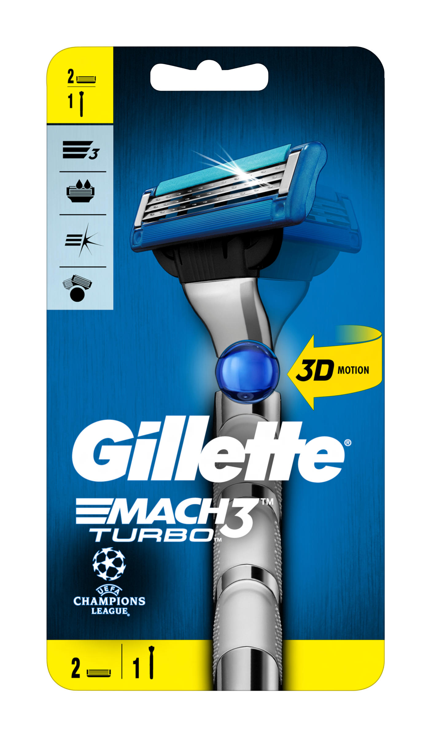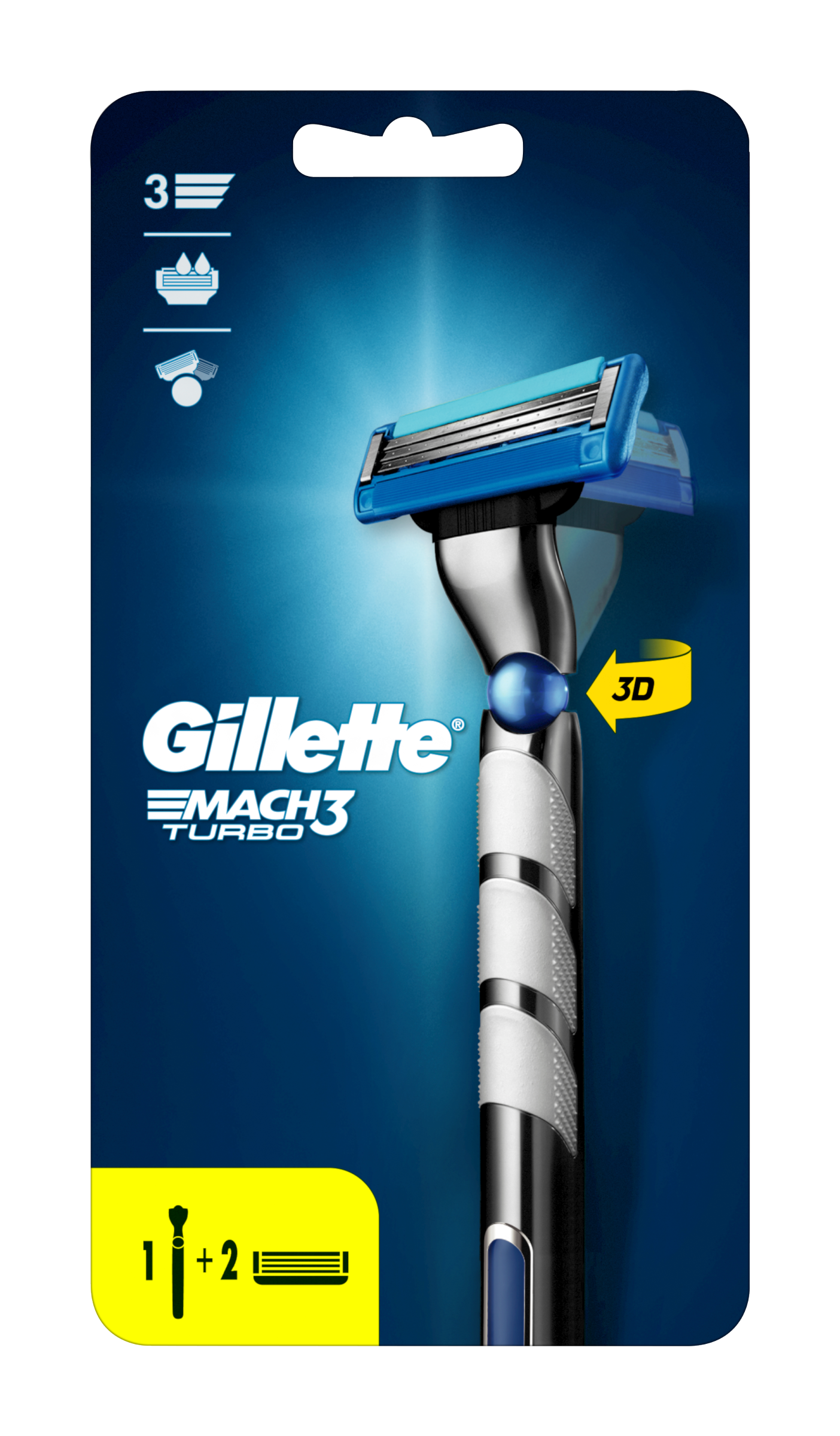 Rukojeť holicího strojku Gillette Mach3 Turbo se pohybuje do tří směrů a poskytuje tak profesionální preciznost i při holení kontur a spolehlivé oholení, které od Gillette očekáváte. Má břity, které holí vousy snadněji s menším taháním a vytrháváním (v porovnání s holítkem Blue3). Mega velký zvlhčující pásek klouže po pokožce. Všechny rukojeti Mach3 lze používat se všemi náhradními holicími hlavicemi Mach3.
