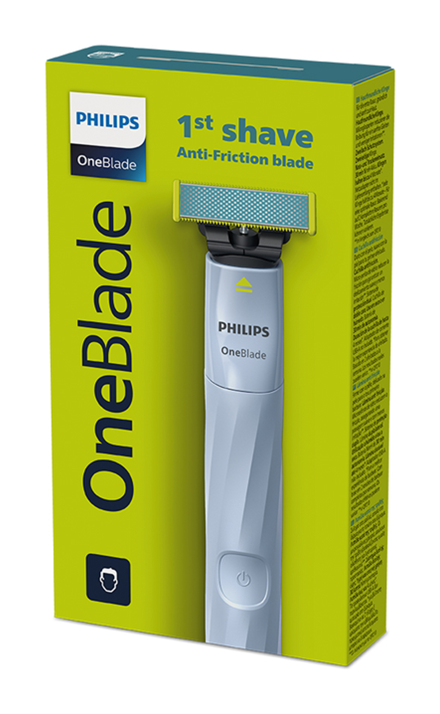 Philips OneBlade First Shave na tvář pro první oholení. Nelítostný k vousům, šetrný k pokožce. Oboustranný břit s dvojí ochrannou před pořezáním. Břit Anti-friction s vrstvou mikroperliček pro snížení tření při holení.