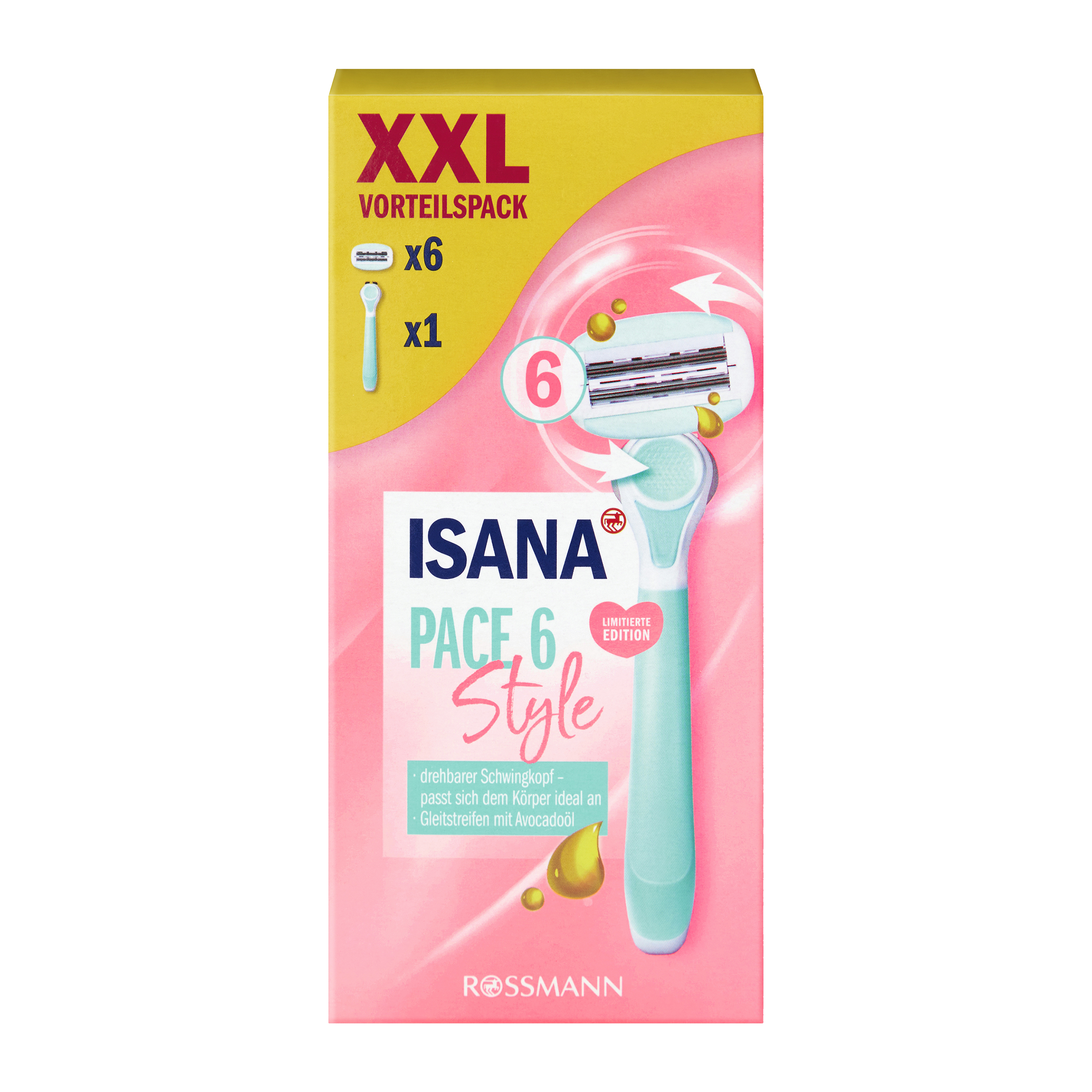 Holicí strojek ISANA PACE 6 STYLE má výkyvnou hlavu se 6 břity a pružně se přizpůsobuje tělu. Díky speciální konstrukci břitů jsou chloupky odstraněny přesně, a to i z citlivých částí těla. Kombinace šesti pružných čepelí a rotační hlavice zajišťuje mimořádně hladký skluz po pokožce.