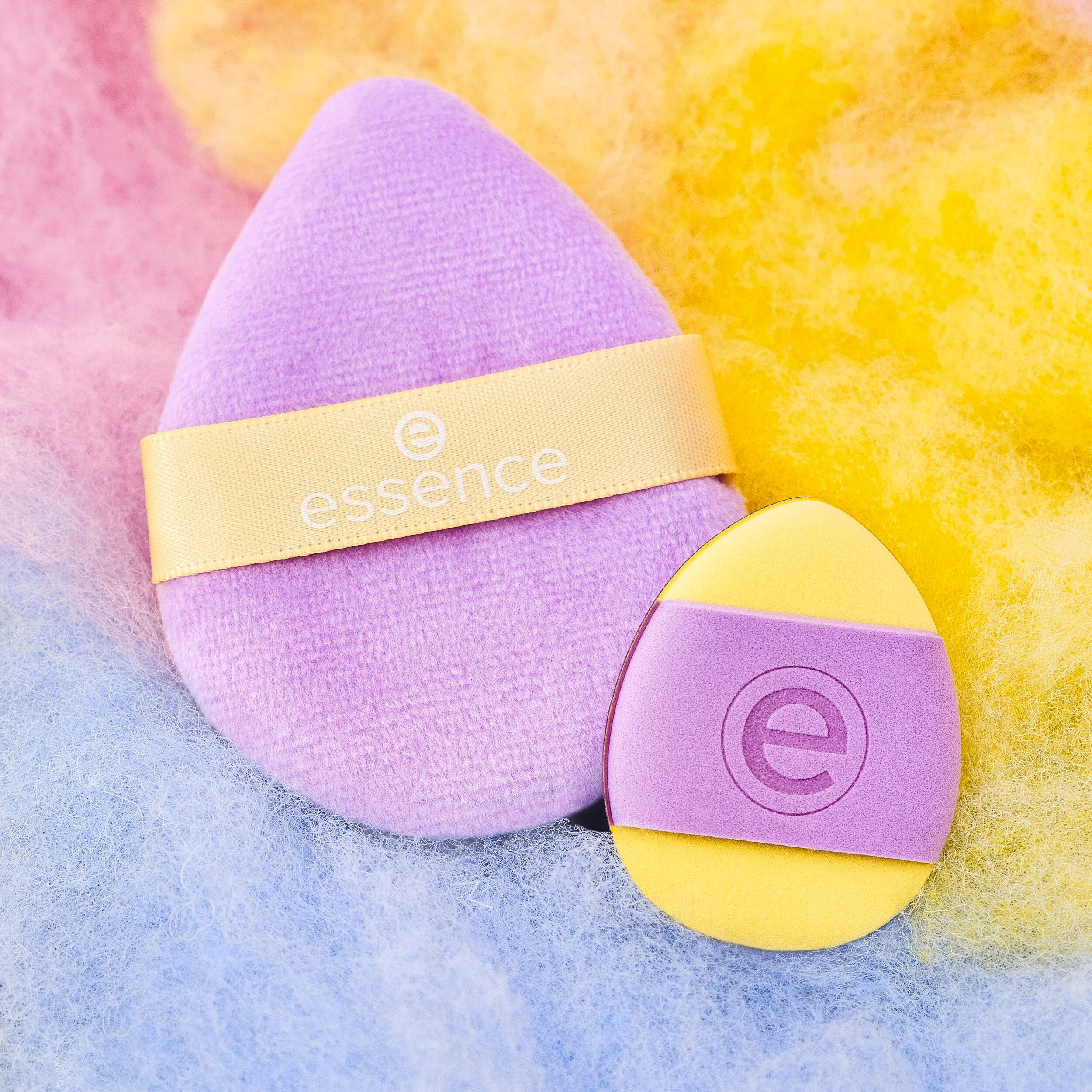 Udělejte z každé aplikace potěšení díky essence What the fluff?! houbičce powder puff 01 Fluff Yeah!. Tato rozkošná dvojice zahrnuje jednu běžně velikou houbičku a jednu mini ve veselých žlutých a fialových tónech – ideální pro snadnou aplikaci a zapracování pudrových produktů. Jejich velmi jemná textura je šetrná k pokožce a zajišťuje rovnoměrné a pohodlné nanášení vašich oblíbených pudrových produktů. Ať už chcete zafixovat make-up nebo rychle upravit líčení na cestách, tyto nadýchané houbičky přináší zábavu i funkčnost do vaší každodenní rutiny.