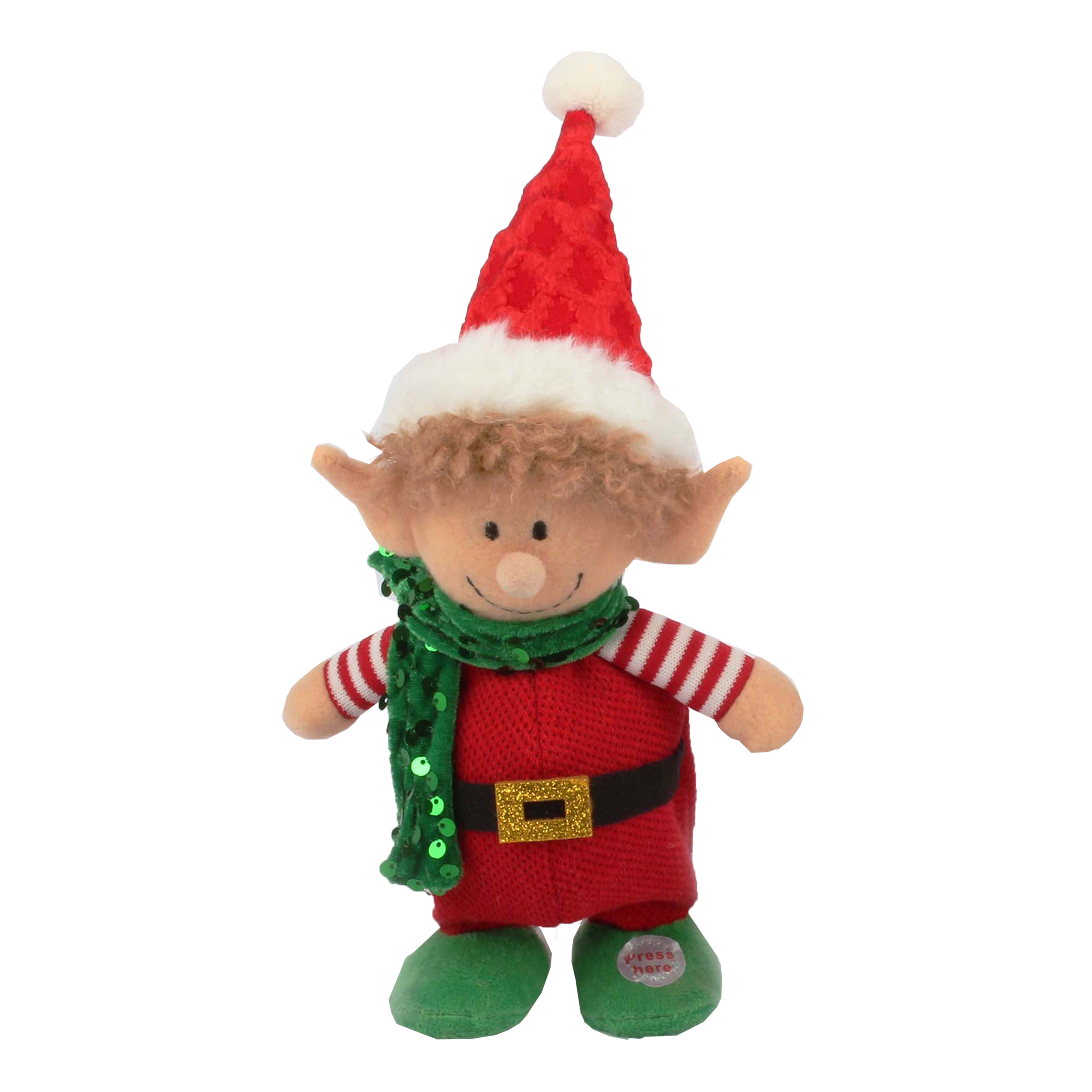 Roztomilý plyšový elf v červeném oblečku s pruhovanými rukávy, zelenými botičkami a třpytivým šálou přináší nejen vánoční náladu, ale i hudební zážitek! Po aktivaci zahraje veselou melodii, která potěší děti i dospělé. Ideální jako dekorace nebo dárek pod stromeček.