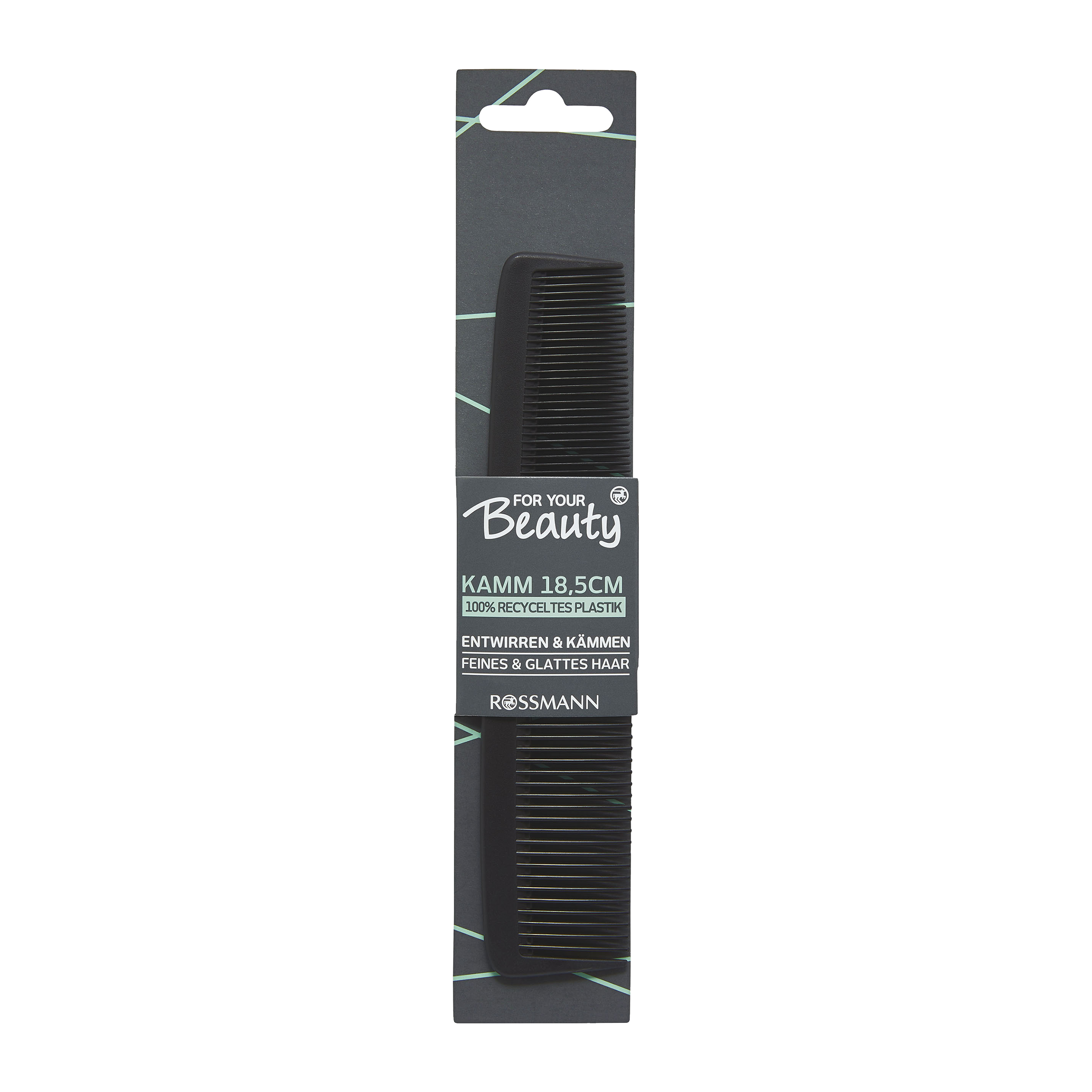 Holičský/kadeřnický hřeben s délkou 18,5 cm je vyroben z antistatického plastu. Polovina tenkých zubů pro velmi jemné vlasy a druhá polovina větších zubů s širšími mezerami třeba pro jemné vlny. Praktický pomocník kdykoliv a kdekoliv.