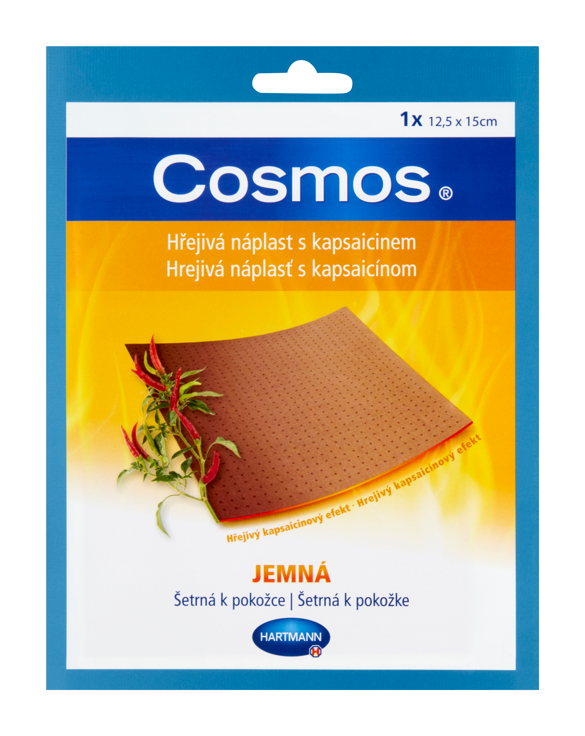Cosmos® Hřejivá náplast s kapsaicinem je určena pro ochranu a zahřátí pokožky. Teplo, které je vytvořeno kapsaicinem, vytváří příjemný pocit úlevy a relaxace.