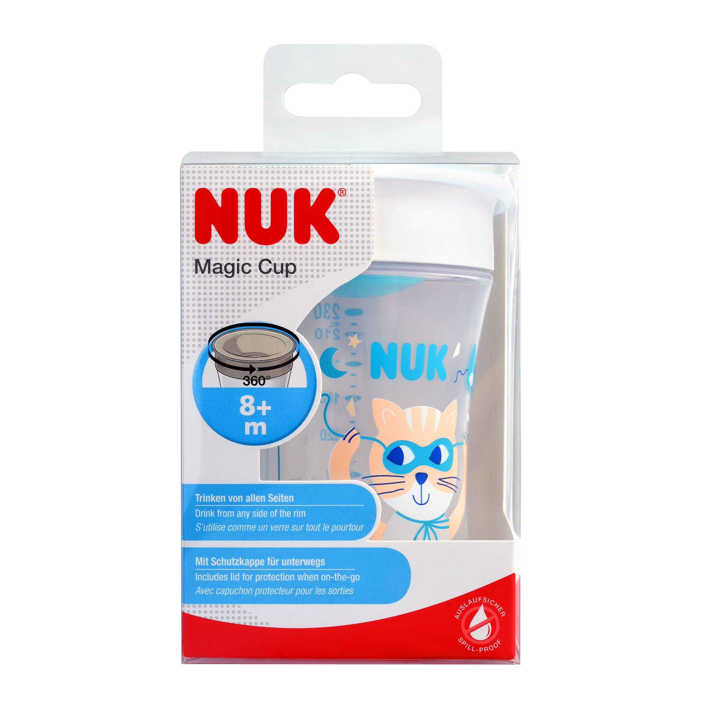 Magic Cup NUK: Naučit se pít je kouzlo Naučit se samostatně pít je jedním z nejdůležitějších kroků ve vývoji miminka. NUK Magic Cup umožňuje dětem pít jako dospělí - stejně jako z normálního hrnečku a ze všech stran. „Kouzelným“ rozdílem je to, že hrneček je bezpečný proti vytečení. Silikonový disk utěsňuje nástavec zevnitř. Pití je dětská hra: stačí jednoduše sát hranu hrnečku a tenký okraj se otevře - učení se pít je kouzlo!