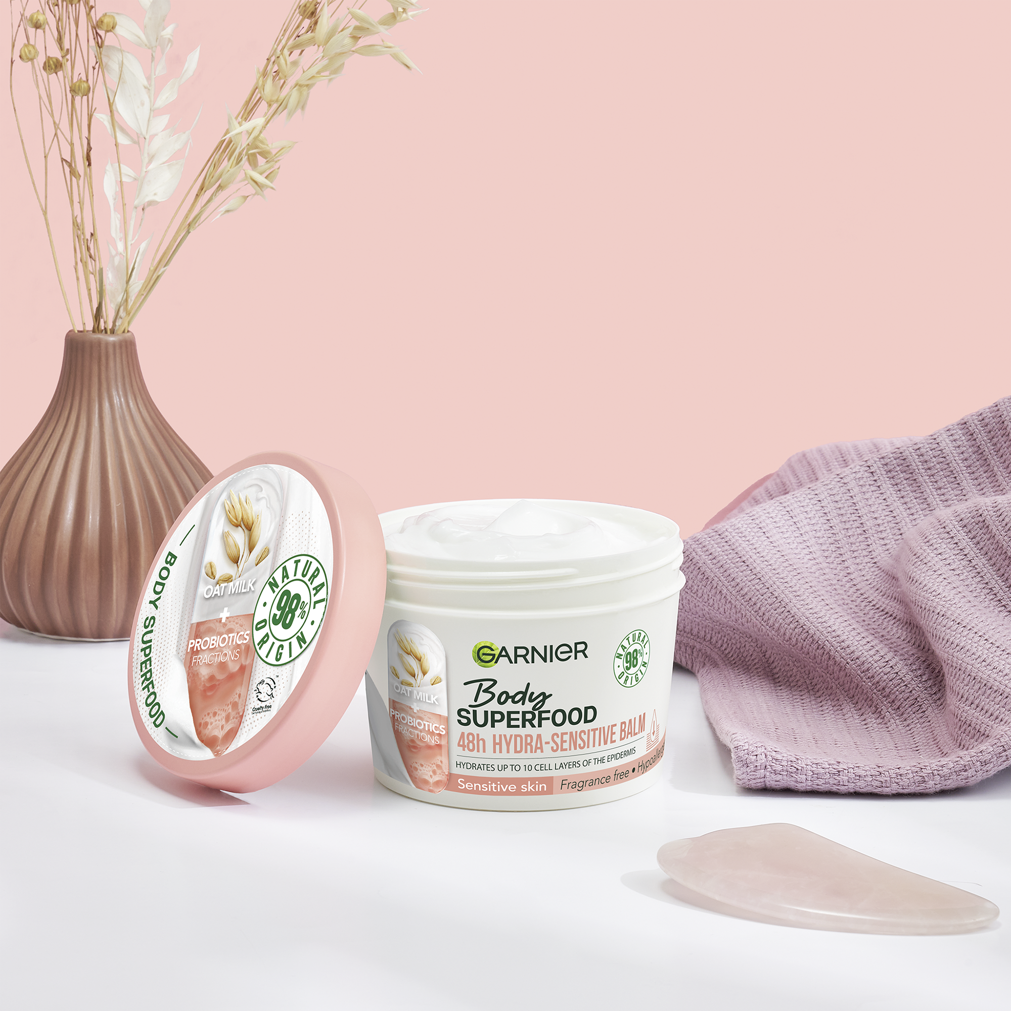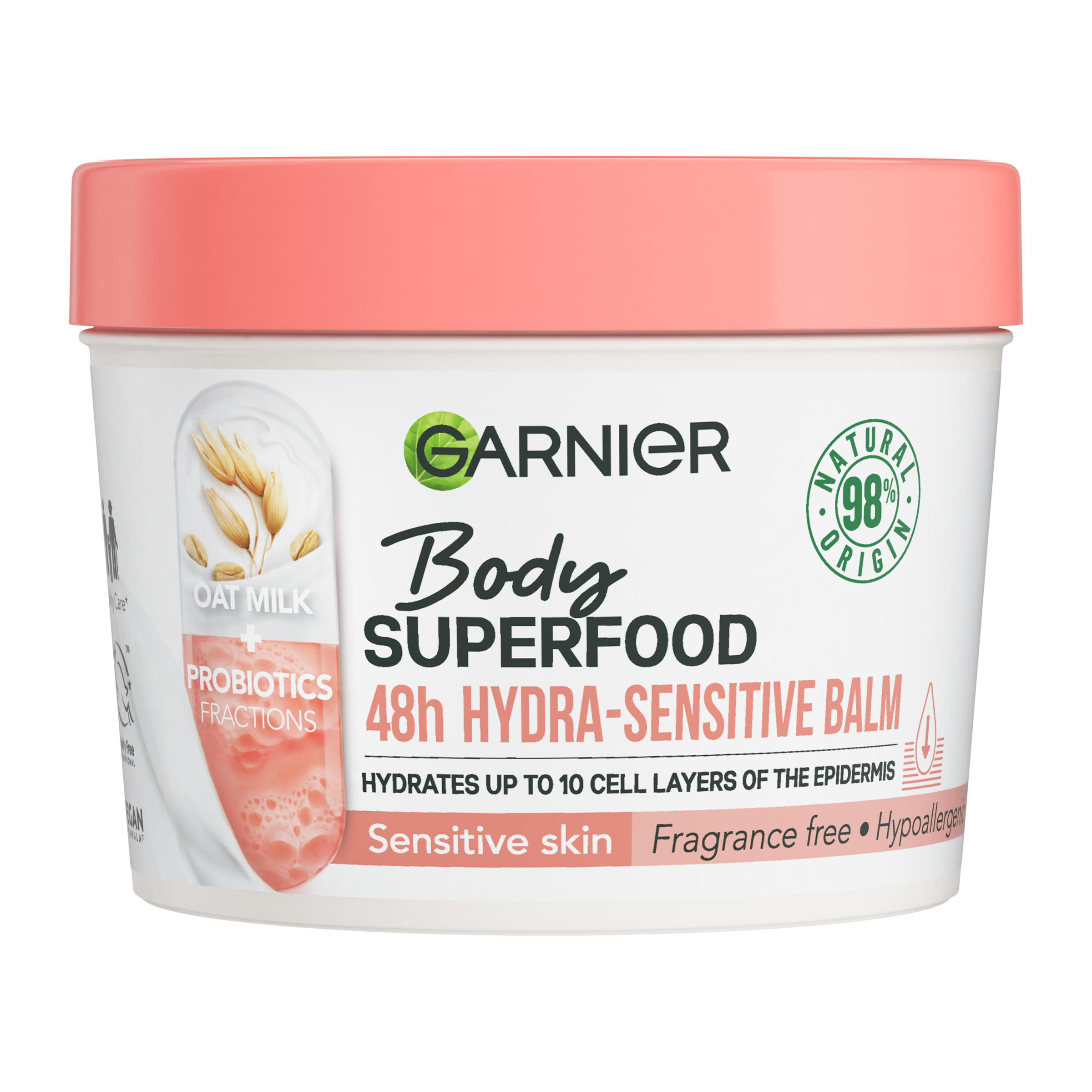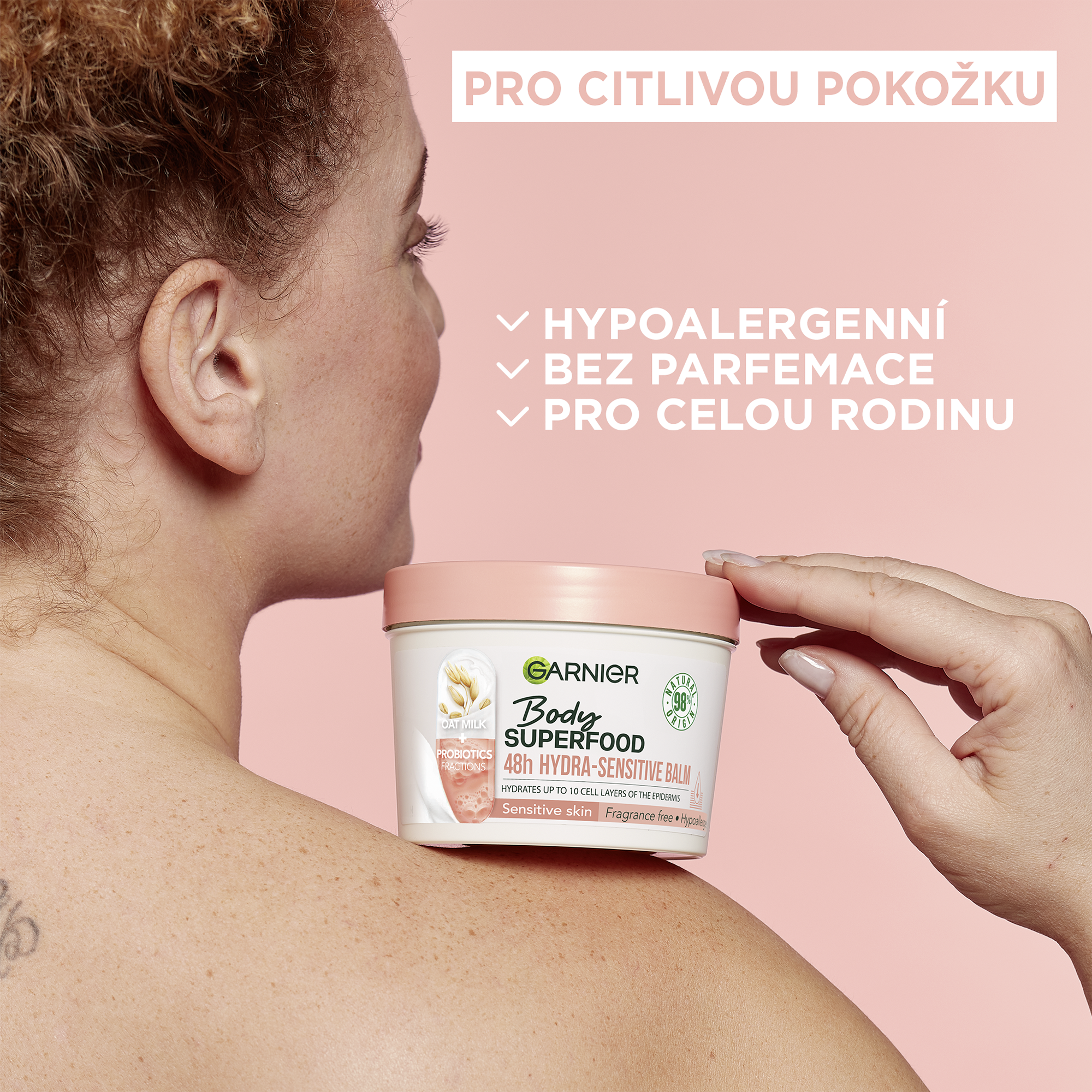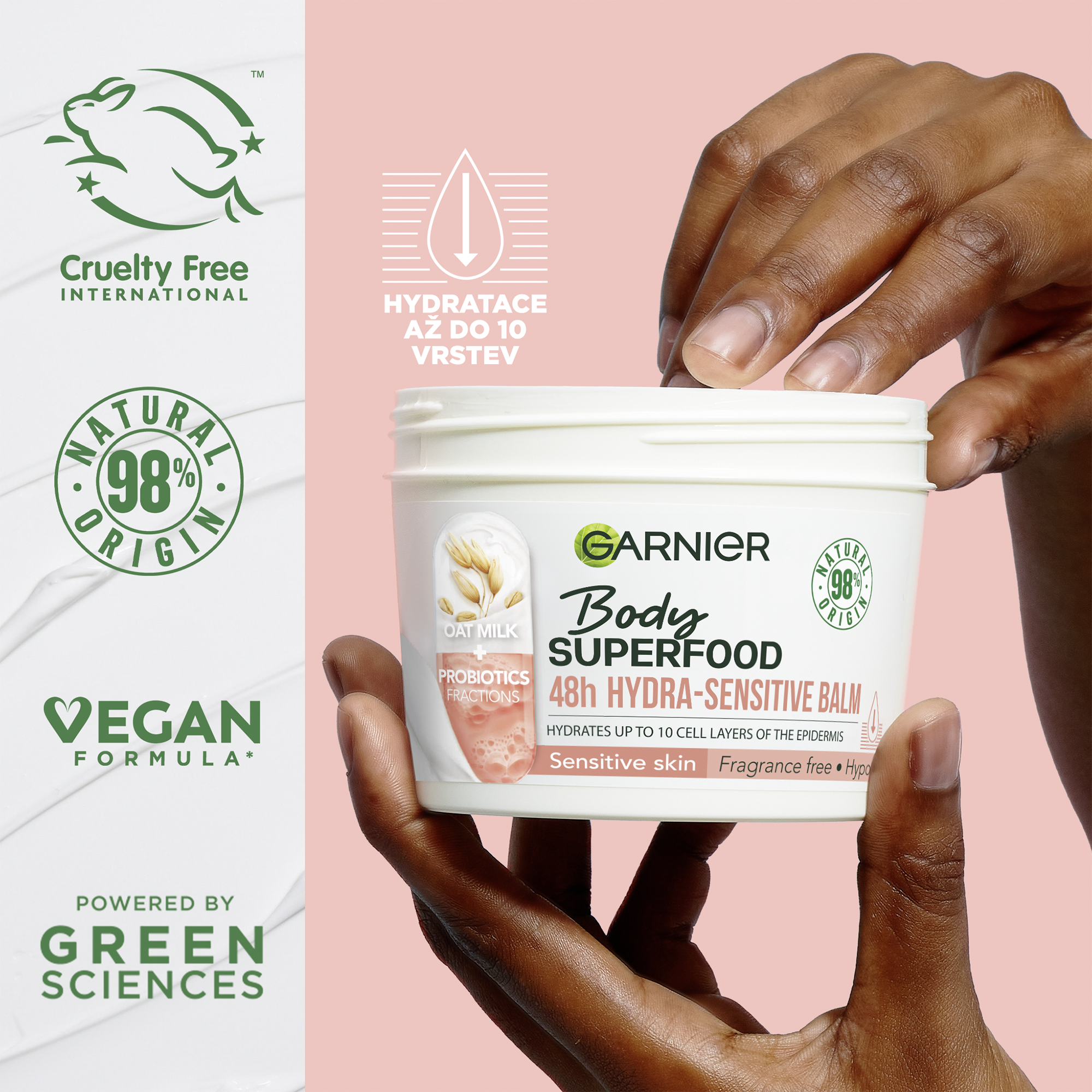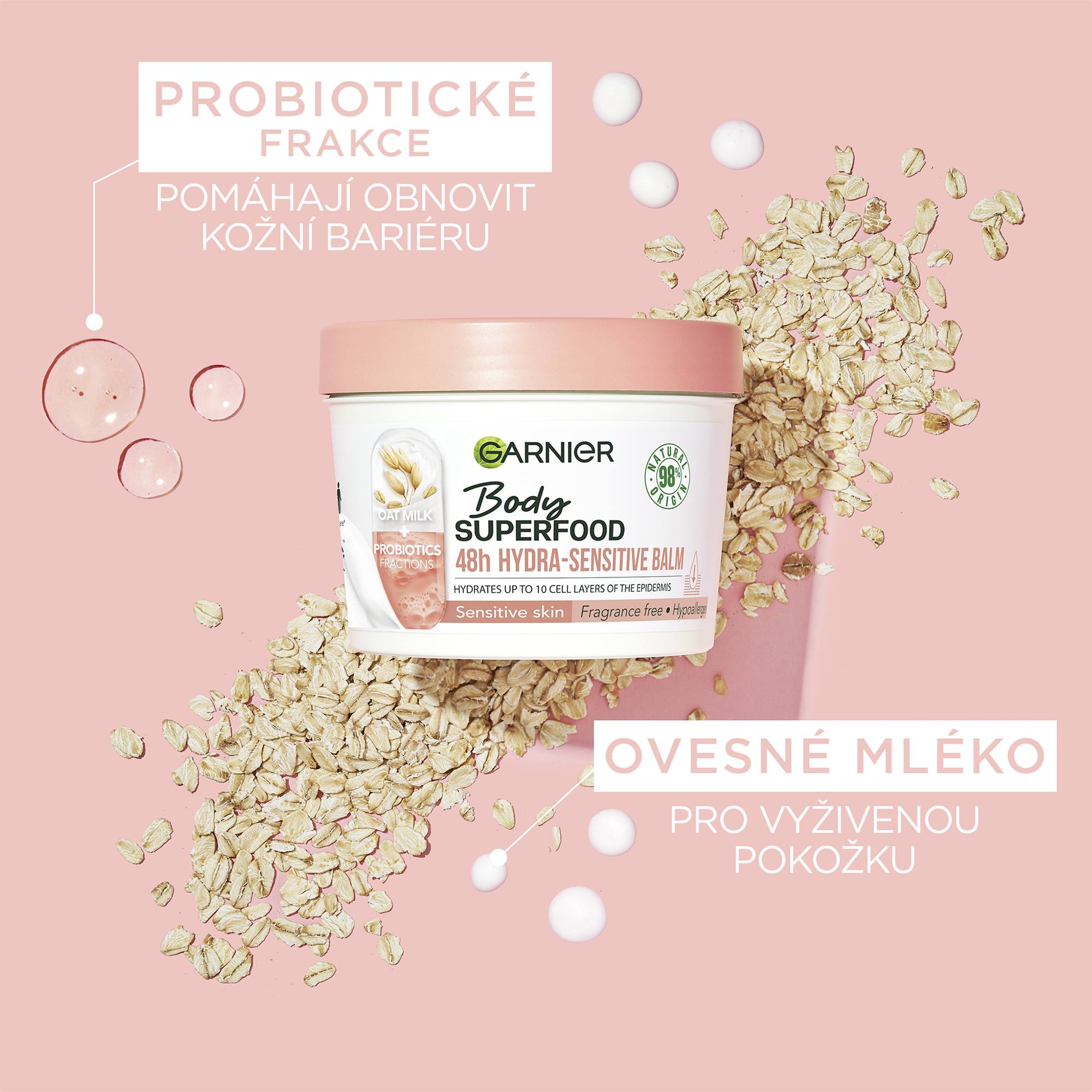 Hydratační balzám s ovesným mlékem a probiotickými frakcemi pro citlivou pokožku. Tvoje denní dávka superpotravin a aktivních látek pro dokonale hydratovanou pokožku. Vyživuje pokožku až do hloubky 10 vrstev a poskytuje až 48hodinovou hydrataci(1). Nepolykej. Uchovávej mimo dosah malých dětí bez dozoru.