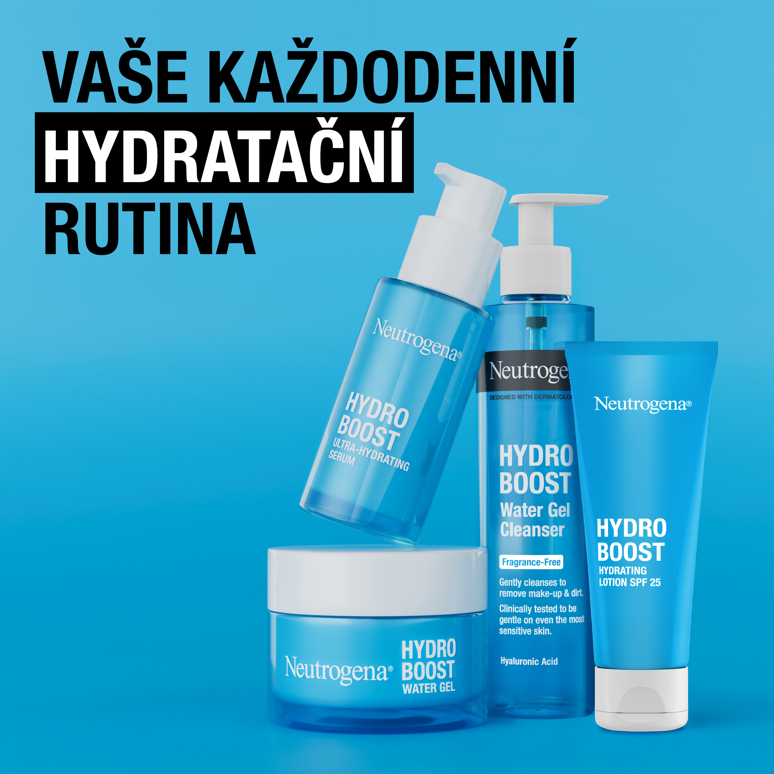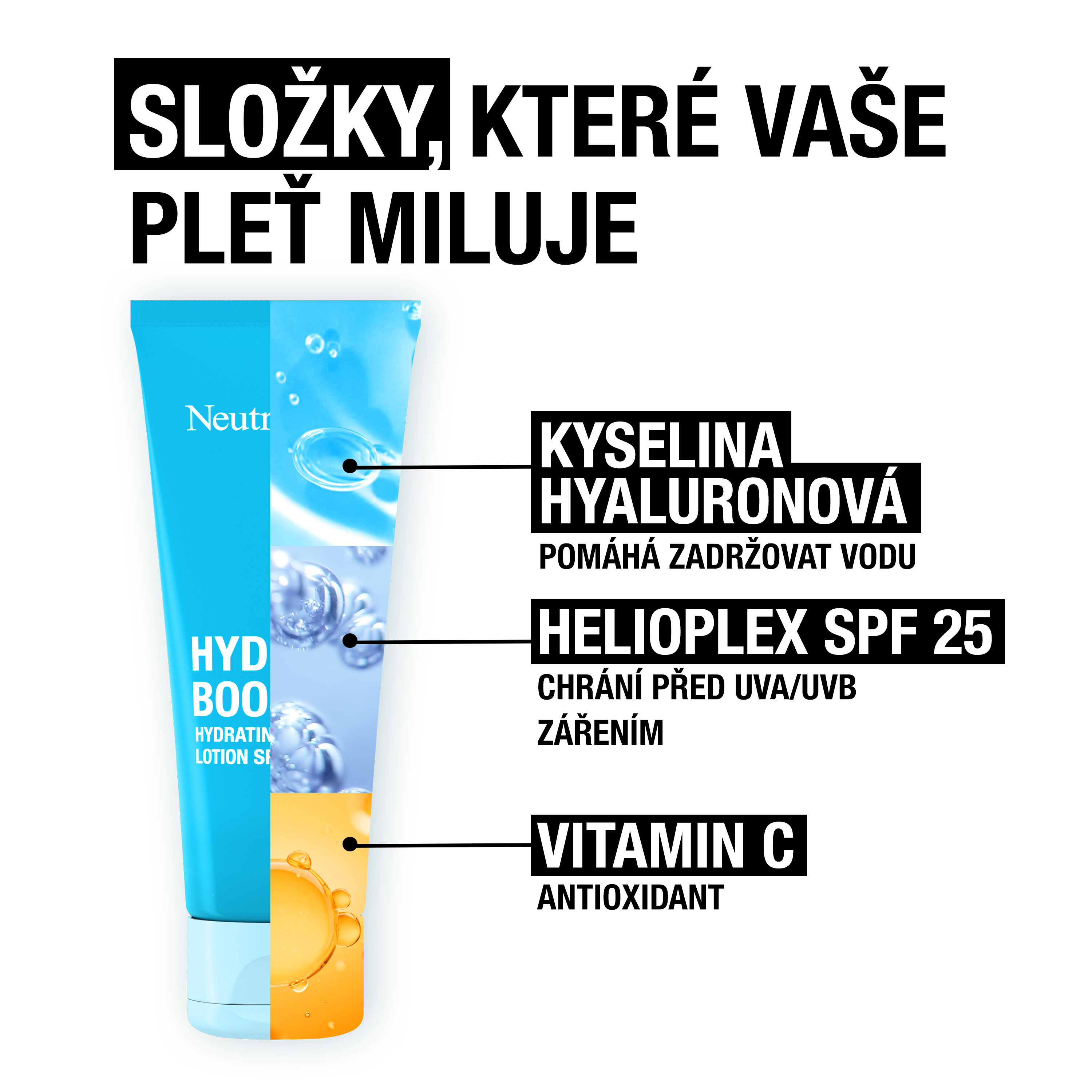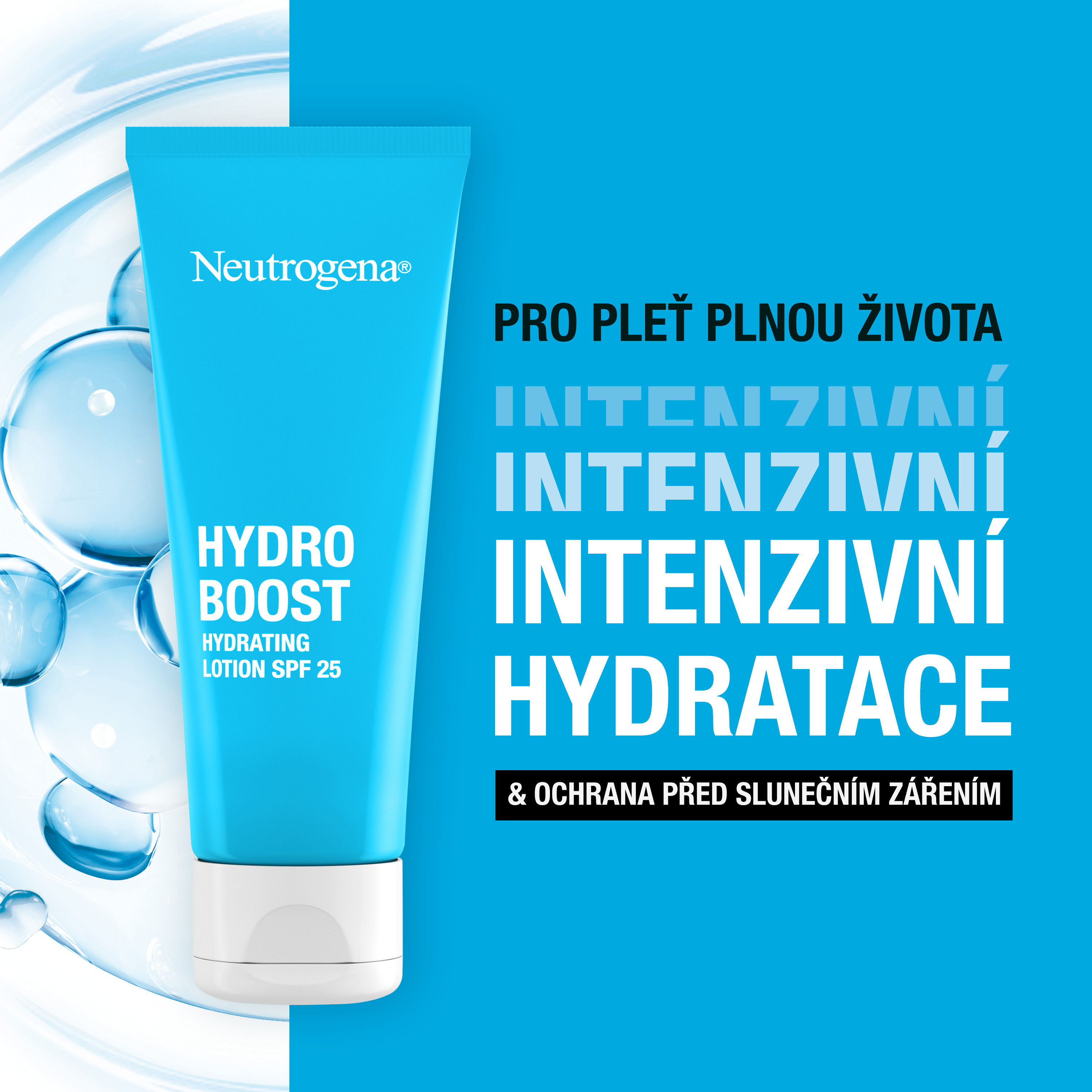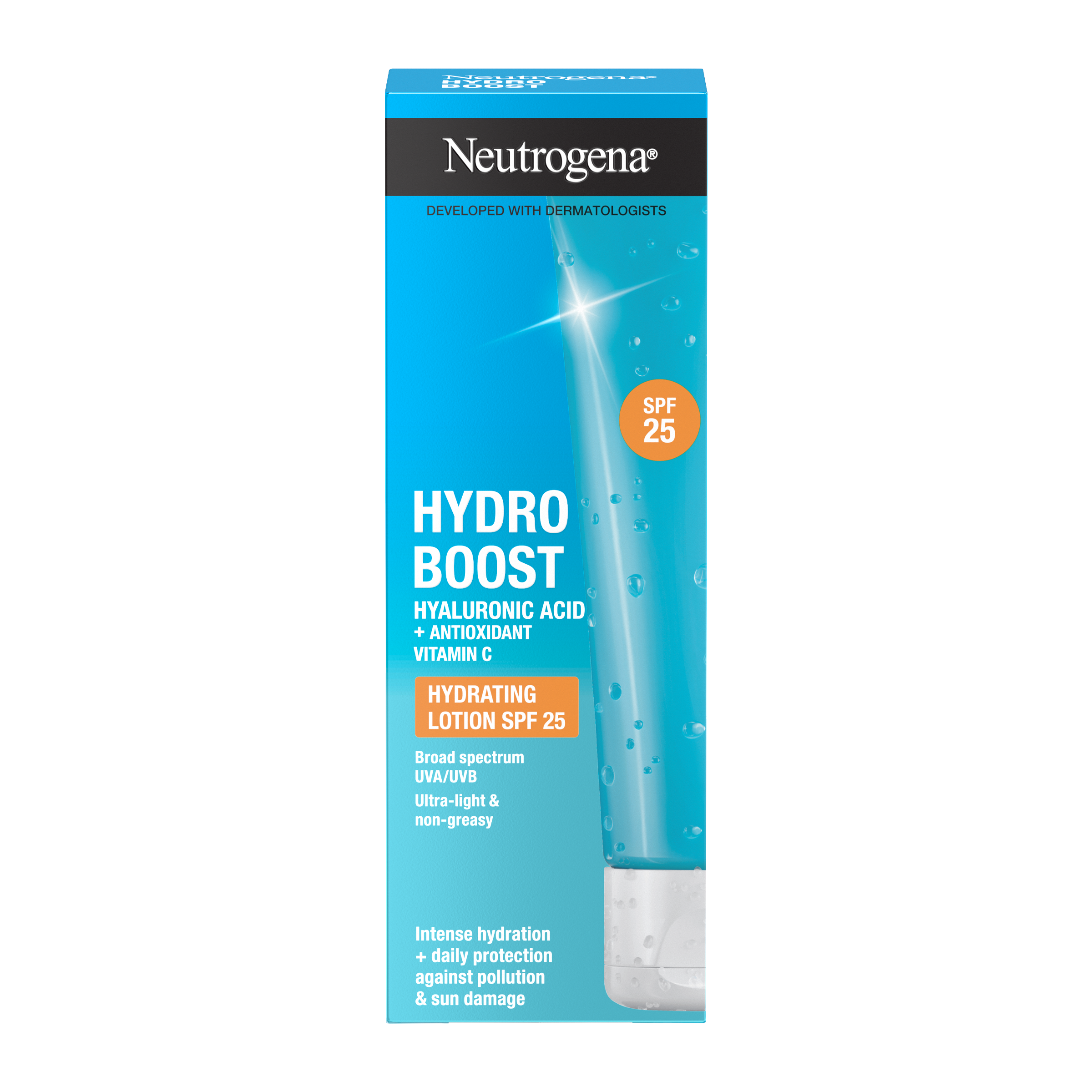 Náročné podmínky jako znečištění ovzduší, nepříznivé počasí a sluneční záření mohou zhoršit hydrataci pleti a její přirozenou ochrannou bariéru. To často vede k předčasnému stárnutí pokožky a ztrátě jasu. Neutrogena® Hydro Boost Hydratační krém SPF 25 pleť intenzivně hydratuje, chrání ji před škodlivým UVA/UVB zářením a znečišťujícími látkami z ovzduší a posiluje její přirozenou ochrannou bariéru. Pro zářivou pleť. Vhodný pro všechny typy pleti. Ultralehké, nemastné & intenzivně hydratující složení. Nekomedogenní - neucpává póry.