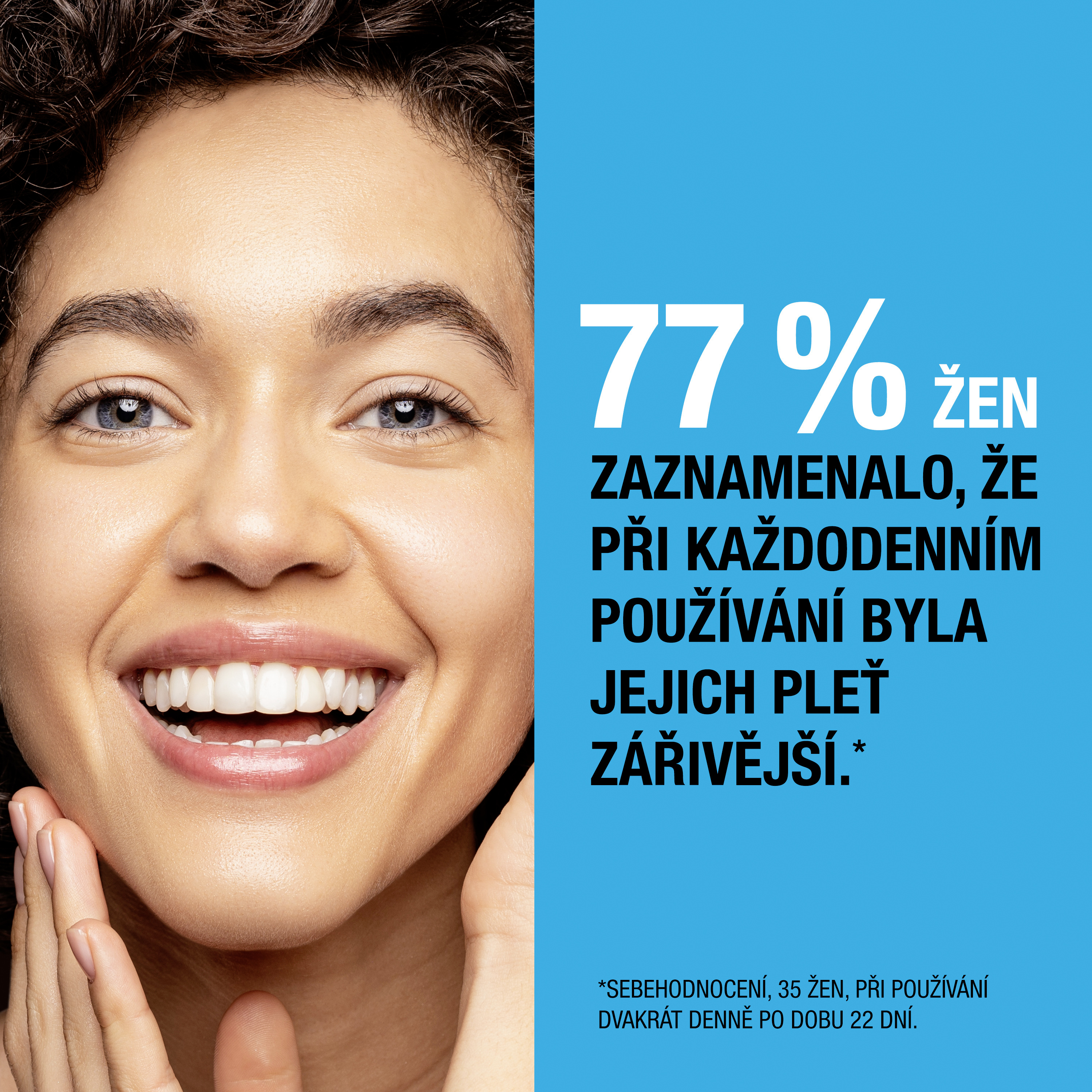 - 77 % žen zaznamenalo, že při každodenním používání byla jejich pleť zářivější.