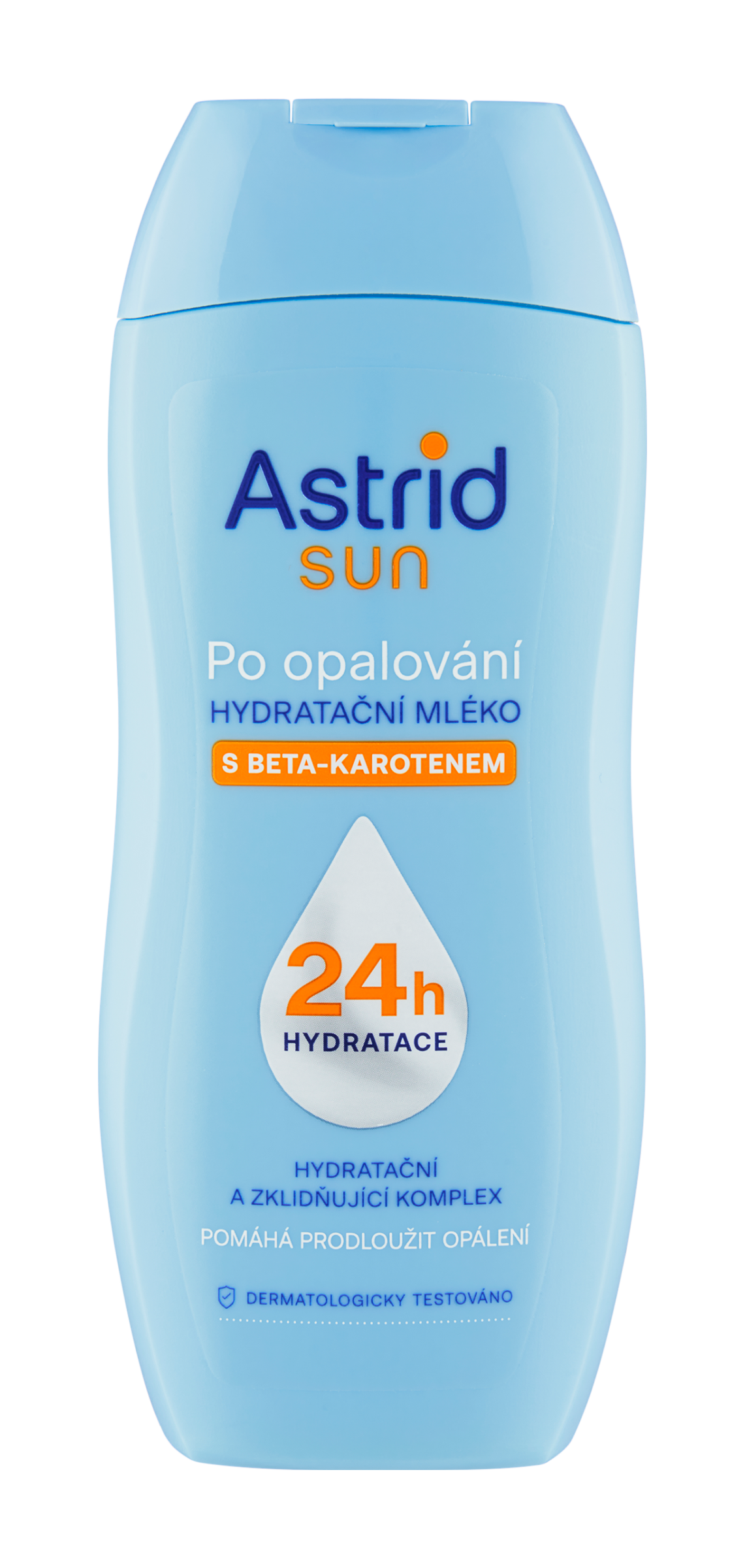 Astrid Sun je jiný. Astrid Sun nabízí mnohem více než jen základní péči po opalování. Složení obohacené o hydratační a zklidňující komplex (D-panthenol, allantoin, bisabolol) efektivně hydratuje pokožku až po dobu 24 hodin a zanechává ji svěží. Díky beta-karotenu navíc přispívá k udržení a prodloužení opáleného vzhledu pokožky.