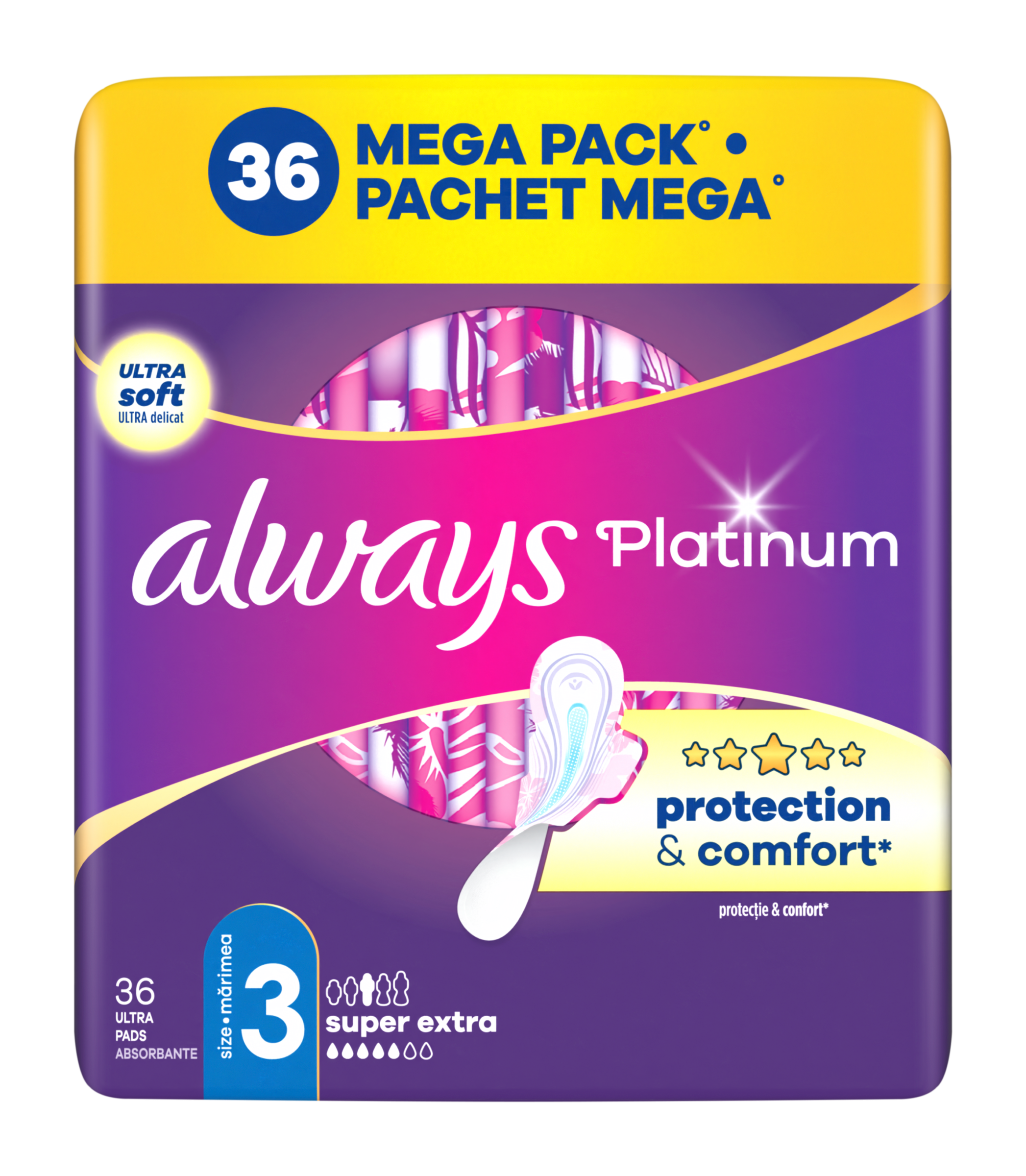 - Always Platinum 5X Protection, ještě hebčí.* *5 vlastností produktu, které poskytují ochranu, produkt je hebčí v porovnání s předchozími produkty Always Platinum