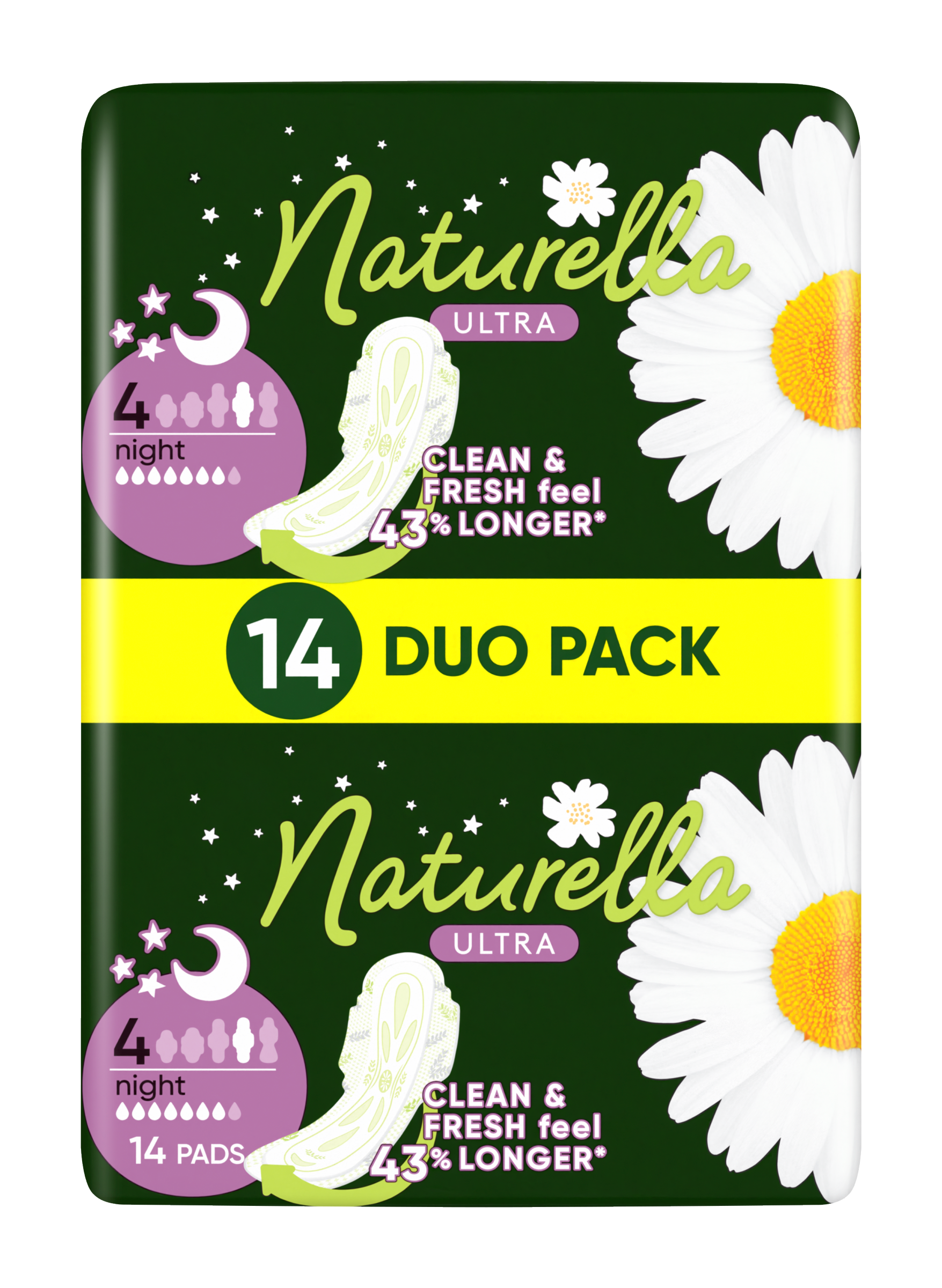 - Vložky Naturella Ultra Night Plus jsou o 43 % delší* pro lepší ochranu během noci. *v porovnání s Naturella Ultra Normal