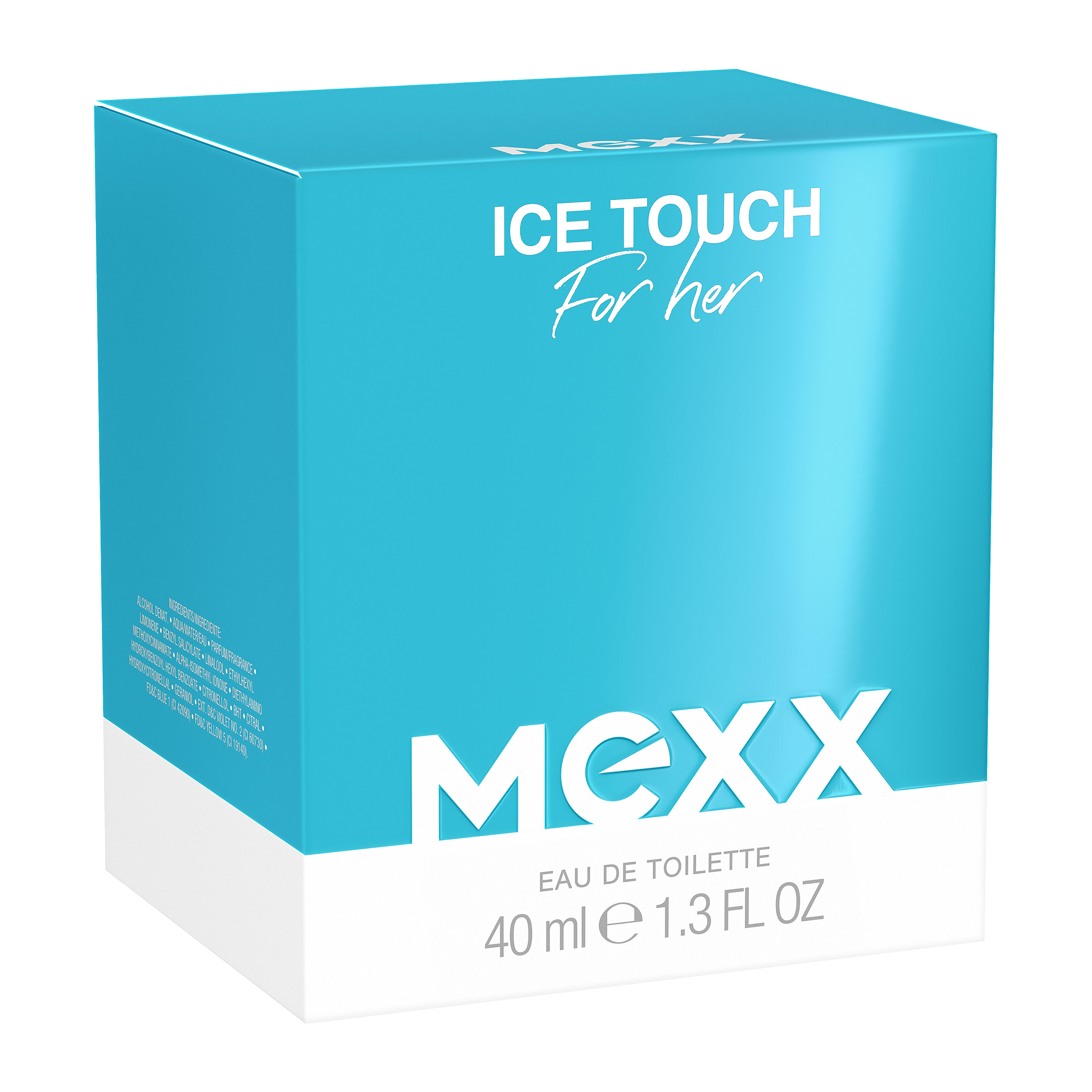 Zažijte pocit tání ledu na své kůži! Nic vás v horkém letním dni neosvěží tak, jako kapky vůně MEXX Ice Touch! Ať jste kdekoliv, stačí se jen navonět a naplno prožívat svůj den. Vůně pro ni zmrazí a uchová všechny jedinečné okamžiky, na které nechcete zapomenout. Balení představuje image MEXX: jednoduše čistou a svěží. Světle modré balení, inspirované kostkou ledu, zobrazuje arktickou scenérii, a ilustruje tak intenzivní osvěžující účinek vůně.