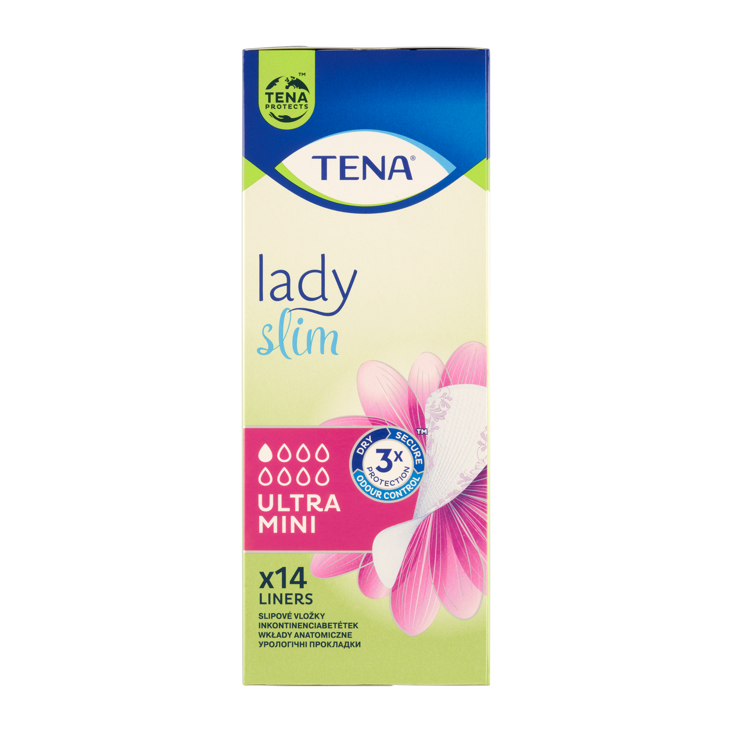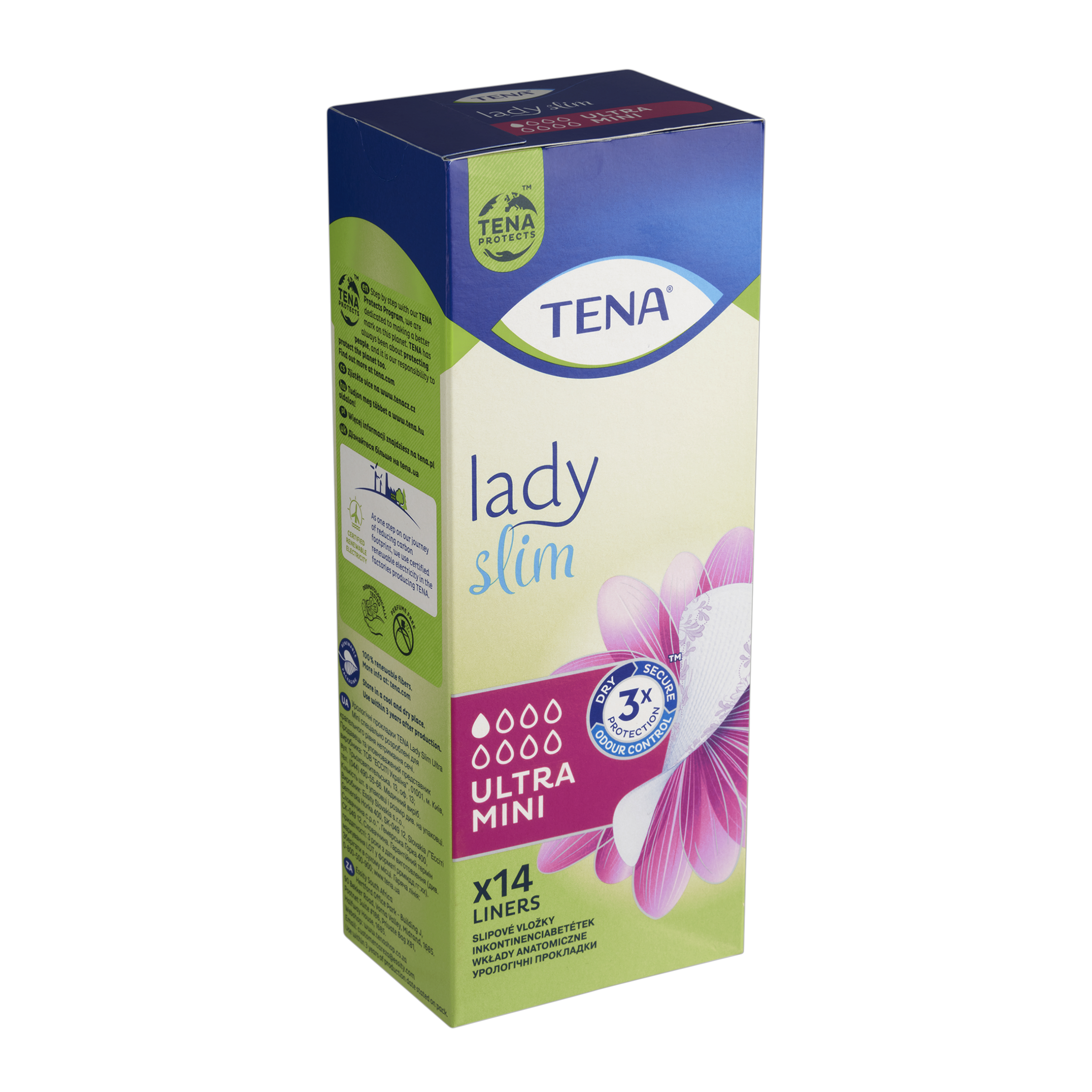 Zdravotnický prostředek inkontinenční slipové vložky vyvinuté speciálně pro velmi lehký únik moči. Na malé a příležitostné úniky moči je zde inkontinenční slipová vložka TENA Slim Ultra Mini, která je velmi tenká, nabízí však vynikající absorpci pro spolehlivou a diskrétní ochranu. Stejná velikost jako u běžných slipových vložek, ale mnohem vyšší absorpce díky technologii microPROTEXT™, která rychle uzamyká tekutinu uvnitř vložky. Tenká a spolehlivá slipová vložka okamžitě brání únikům moči, zápachu a dodává po celý den pocit svěžesti.