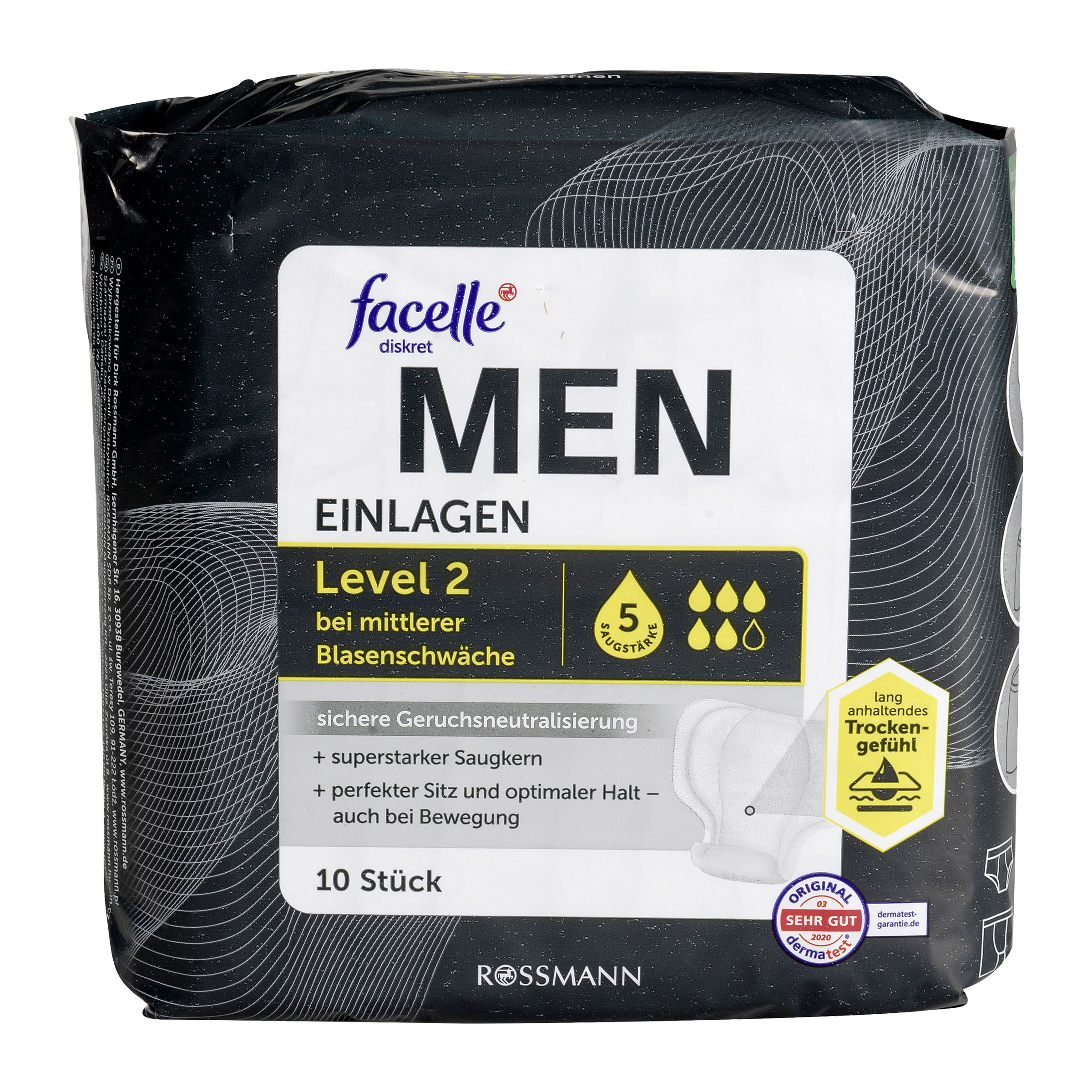 Diskrétní inkontinenční vložka facelle MEN nabízí maximální bezpečnost a diskrétnost. Měkké a elastické manžety na nohou zabraňují úniku. Zápach je rychle a bezpečně zachycen pro příjemný pocit svěžesti. Rychlá absorpce tekutiny zajišťuje dlouhotrvající pocit sucha při mírné slabosti močového měchýře. Vložka facelle discreet MEN byla vyvinuta speciálně pro mužskou anatomii. Vložka MEN by měla být používána společně s přiléhavými kalhotami. Měkký povrch a tvar přiléhající k tělu zajišťují nejlepší možný komfort při nošení.