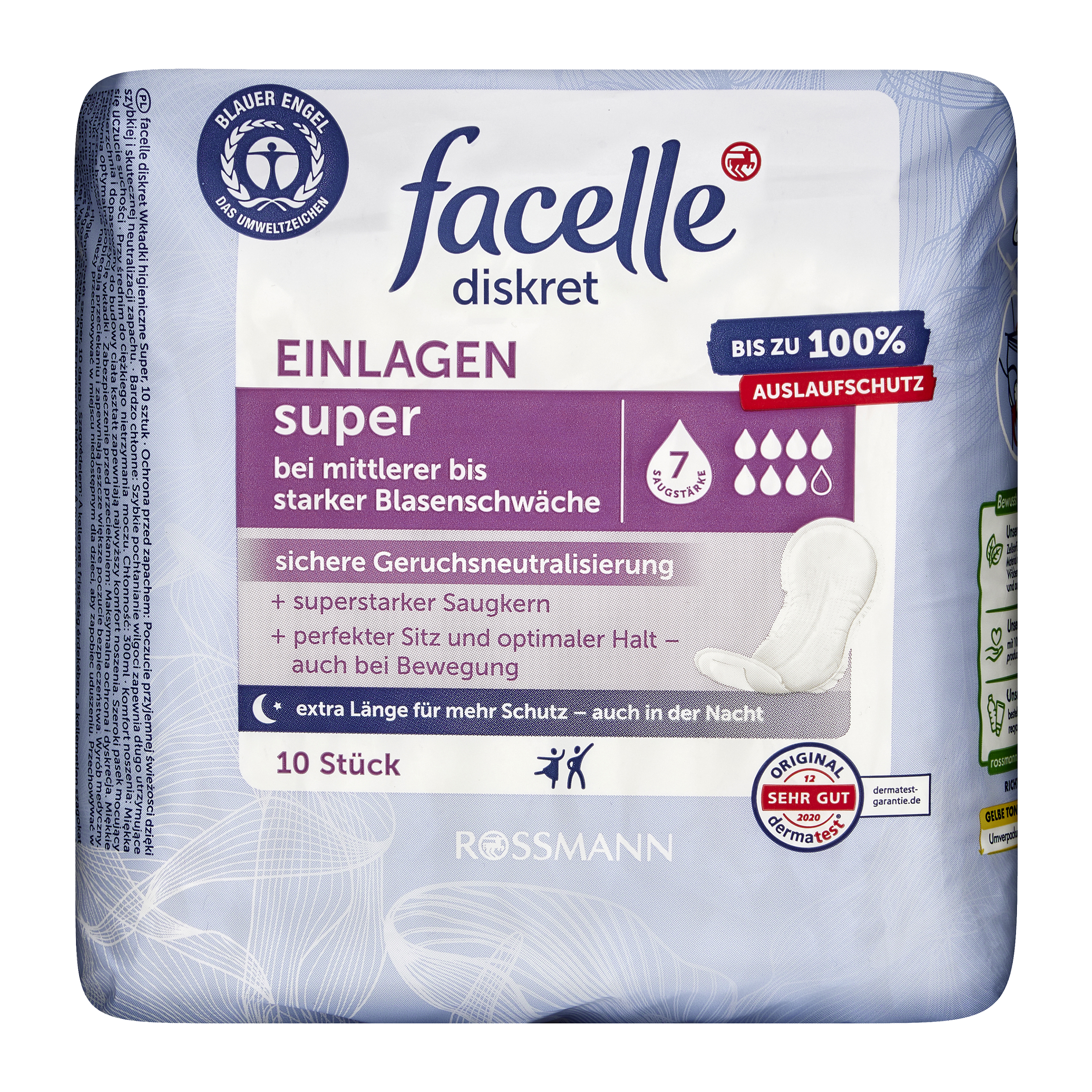 FACELLE Diskrétní vložky pro středně těžkou až těžkou slabost močového měchýře.