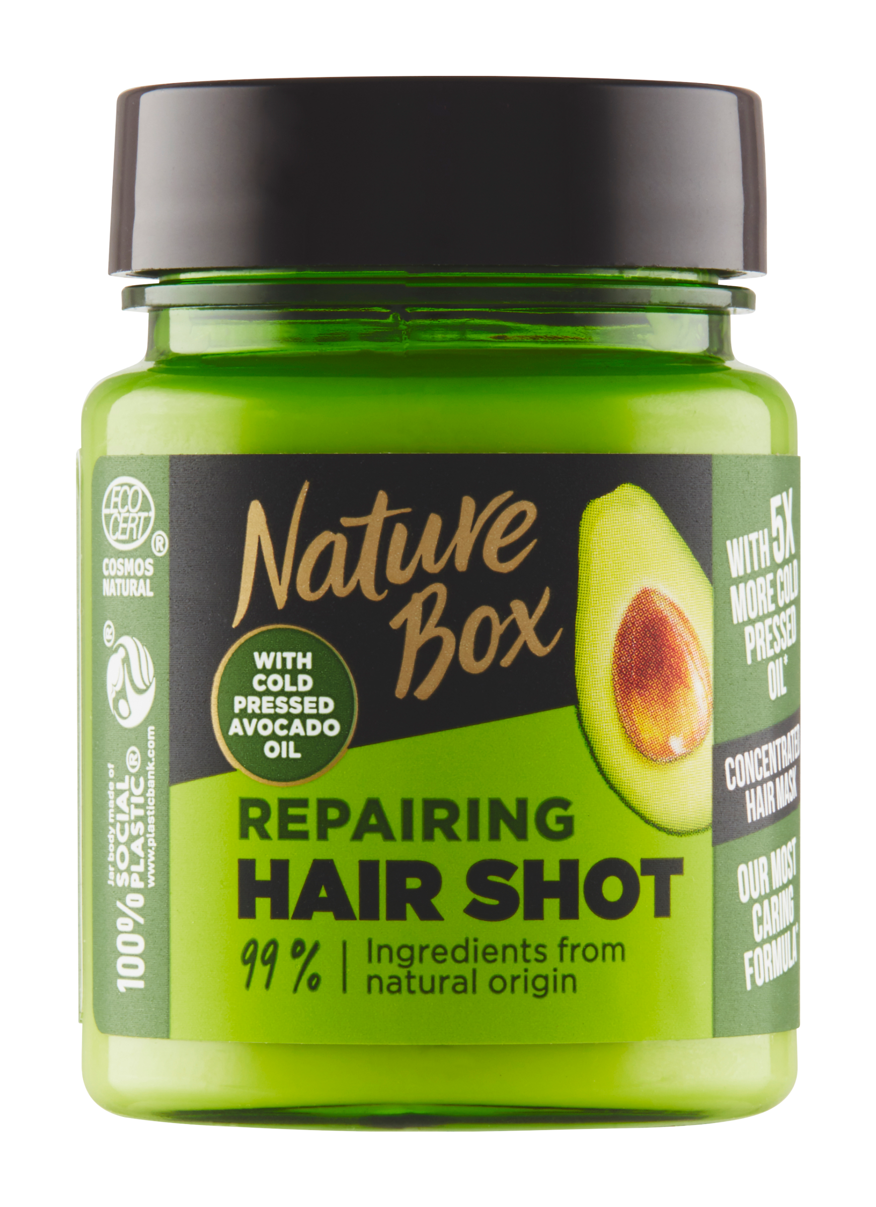 Nature Box intenzivní regenerační kúra na vlasy. Za studena lisovaným avokádovým olejem. 5-krát víc za studena lisovaného oleje v porovnání s Nature Box klasickými kúrami na vlasy.