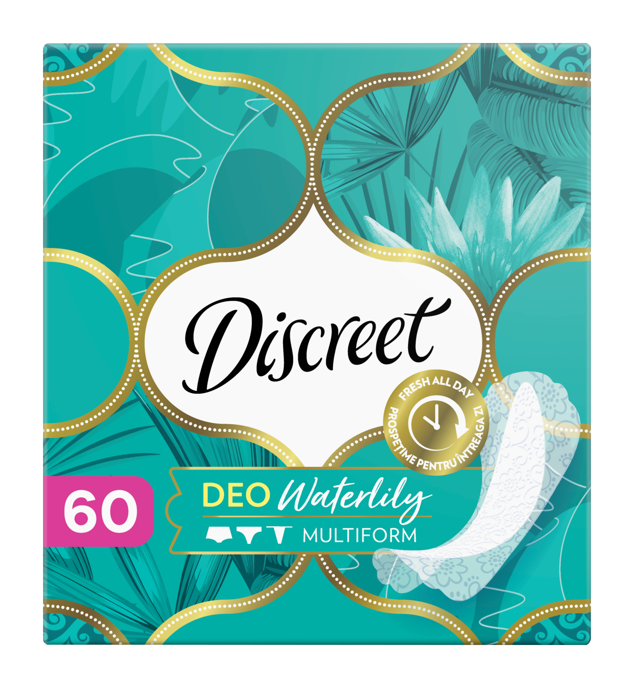 Intimky Discreet Multiform Waterlily vám pomohou cítit se svěží a zároveň krásná bez ohledu na váš styl! Tyto intimky umožňují pokožce v intimních partiích přirozeně dýchat a zajišťují tak až 12 hodin svěžesti a pohodlí. Jsou tak tenké, že je ani neucítíte. Navíc se díky svému flexibilnímu provedení přizpůsobí každému střihu spodních kalhotek. Charakteristická vůně leknínu je velmi svěží a ženská. Bez ohledu na to, co vám dnešek přinese, s těmito intimkami to zvládnete!