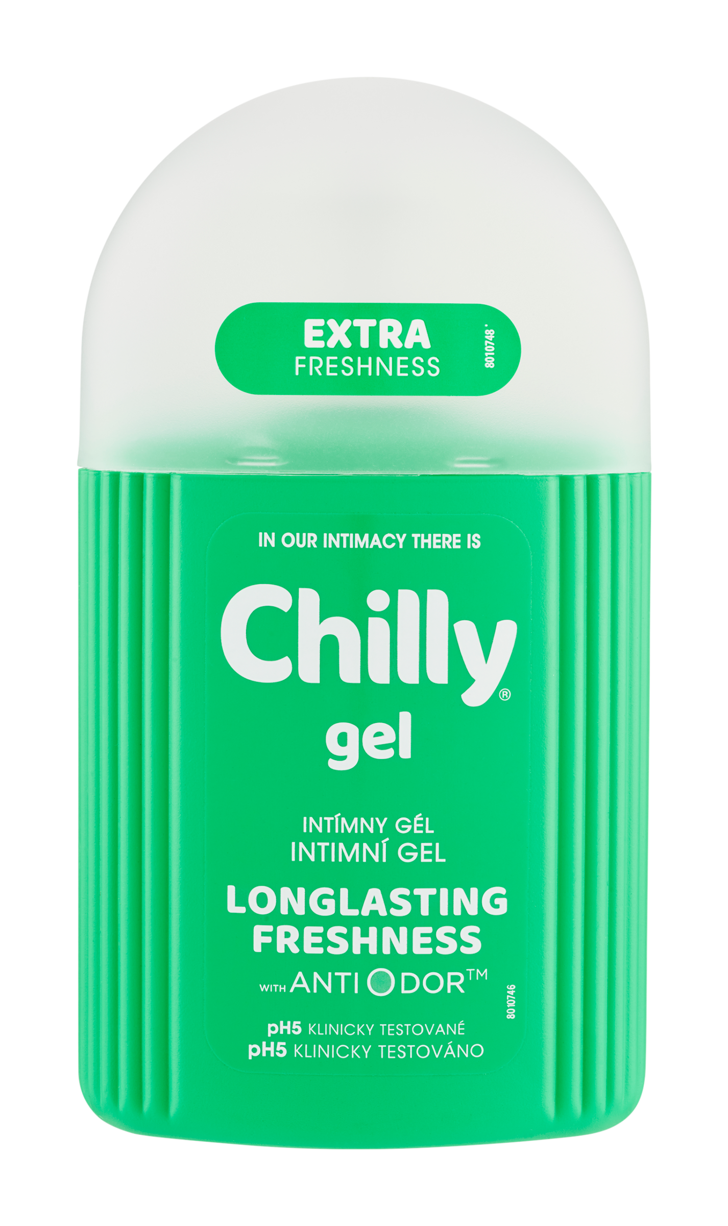 Intimní Chilly gel - Dodává příjemný pocit svěžesti, je obohacen přírodním mentholem. - Směs aktivních čistících látek jemně čistí intimní partie. - Respektuje přirozené PH v intimních partiích díky složení s pH5.