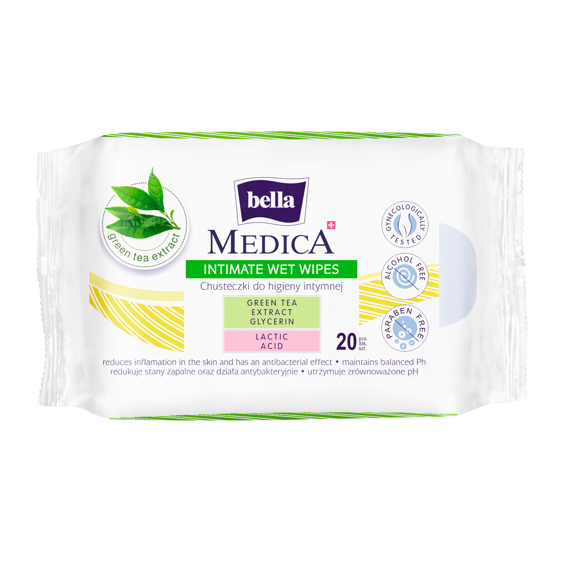 Intimní vlhčené ubrousky s jemnou vůní a výtažkem ze zeleného čaje.